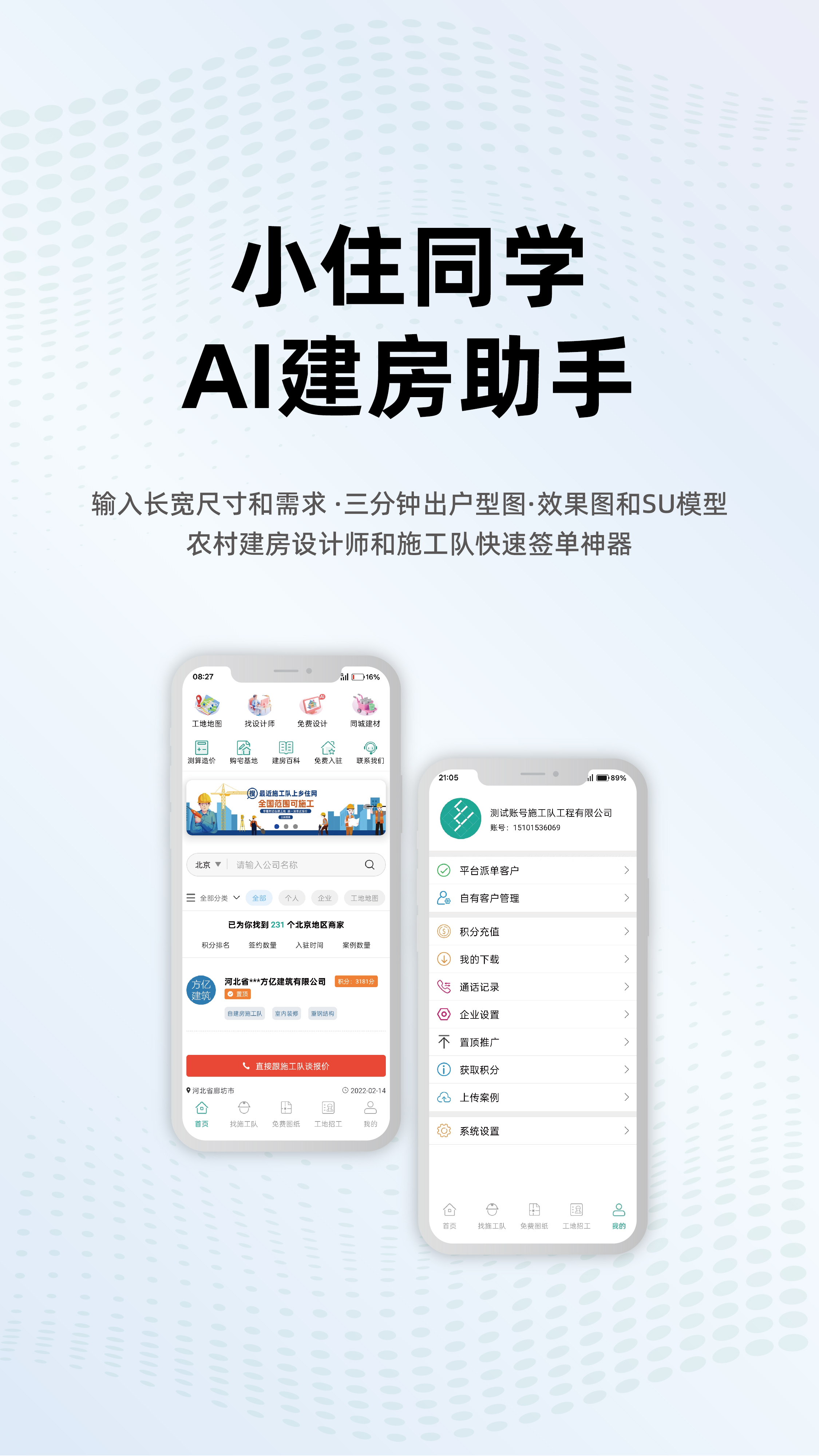作为乡住自主研发、专为乡村自建房行业量身打造的极速设计软件,小住同学精准贴合现场办公需求,凭借强大的AI智能引擎,重构建房设计全流程,用速度打破效率壁垒。无需复杂操作,无需专业设计功底,只需输入宅基地面宽、进深、层数等基础信息,10秒钟就能智能生成标准户型图,省去繁琐的手绘步骤与反复调整的麻烦;在此基础上,短短3分钟,高清效果图与三维模型便能一键生成,立体呈现房屋外观、室内布局,让客户当场看见未来家的模样,彻底告别“靠想象沟通”的尴尬。