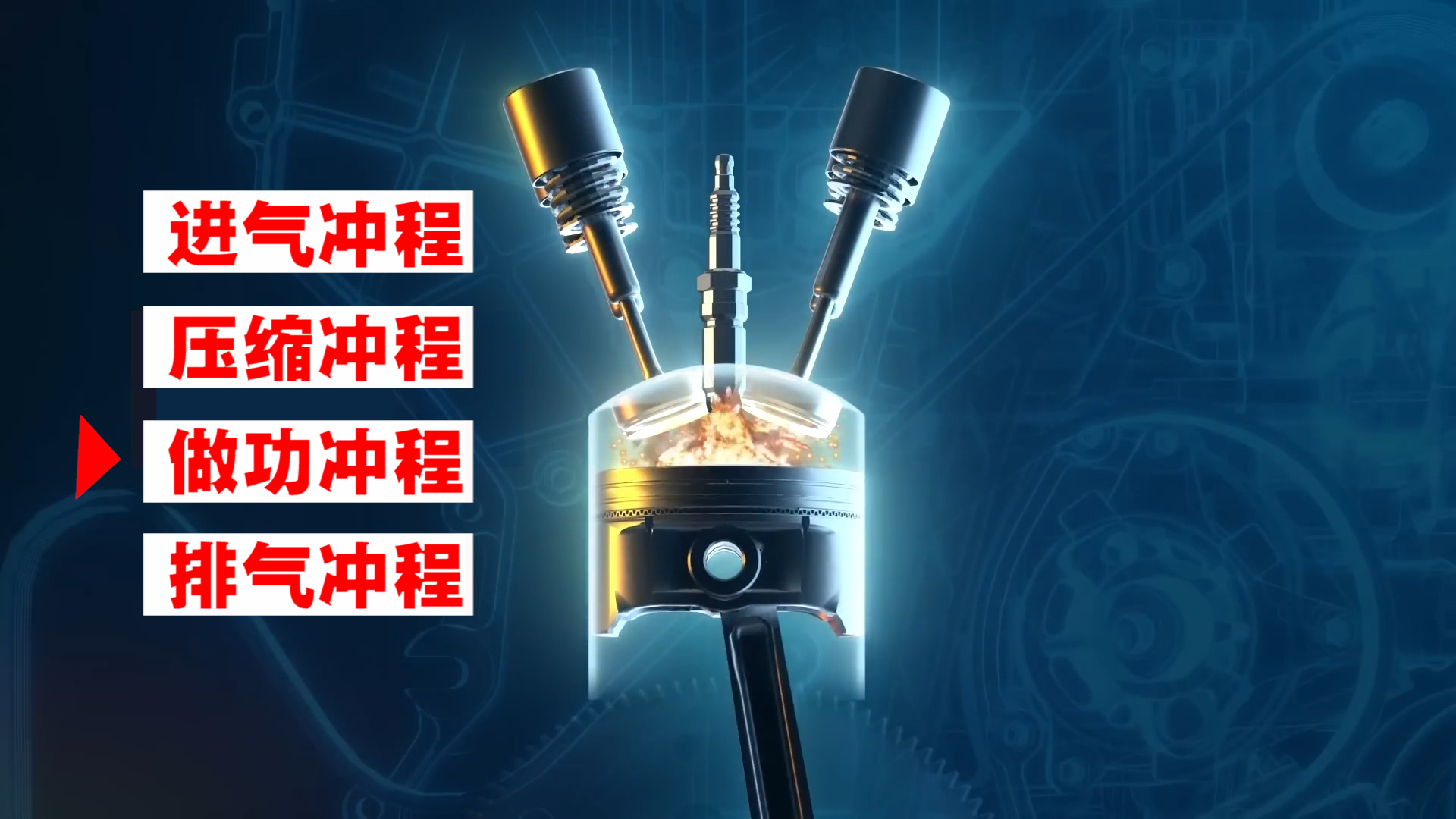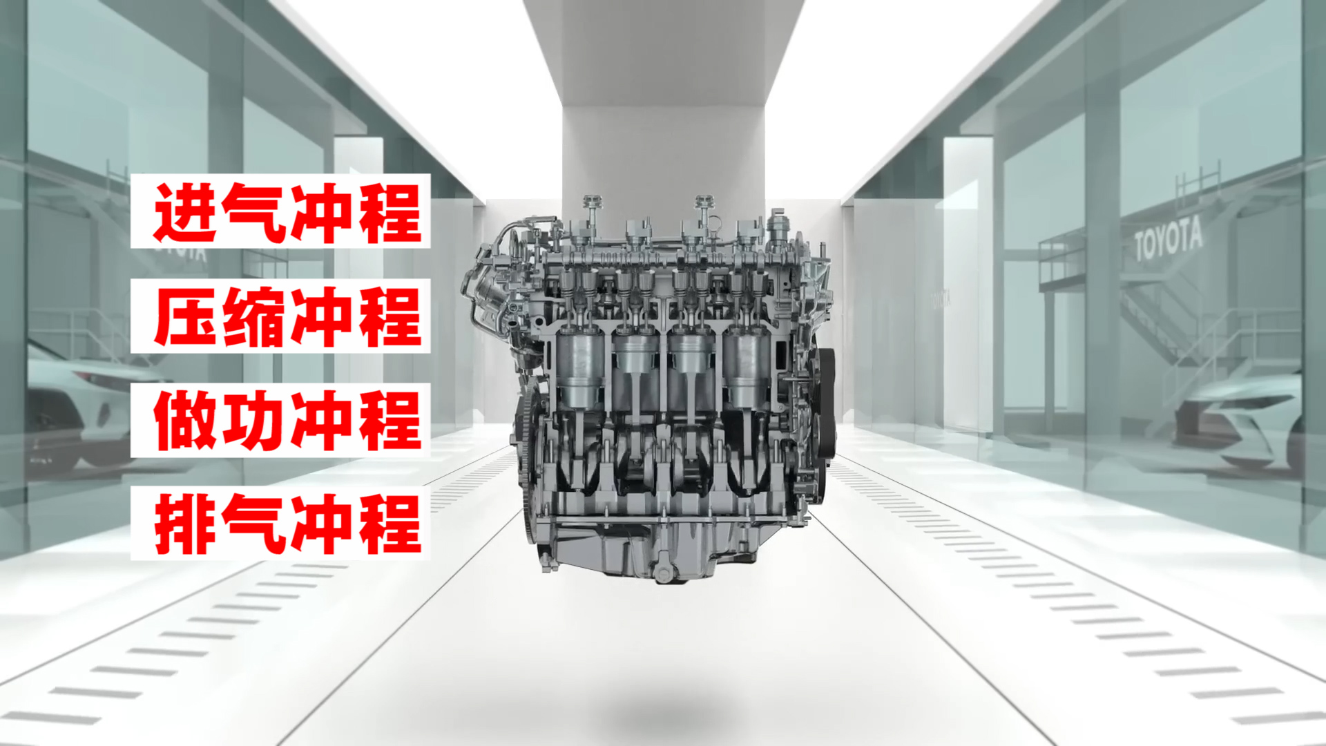 那这就不得不说一下发动机的工作过程了,主要分为四个冲程,进气冲程、压缩冲程、做功冲程、排气冲程。
