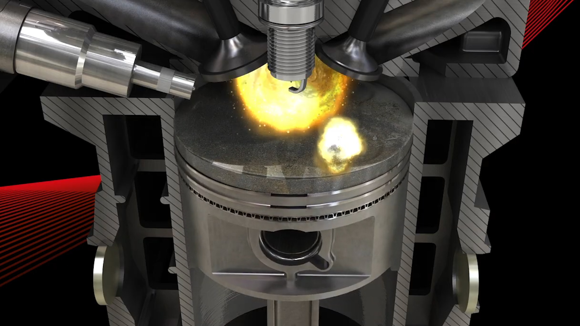 而爆震现象就出现在压缩和做功这两个阶段,一般电火花点燃混合气是可控的,但如果发动机的压缩比过高(活塞压的太狠),就会让气体温度压力超标,还没等火花塞点火,混合的气体就提前自燃起来了,产生的压力和冲击波会让发动机出现爆震,导致我们开车时出现发动机抖动或动力掉档,长期下来则会导致发动机零部件损坏。