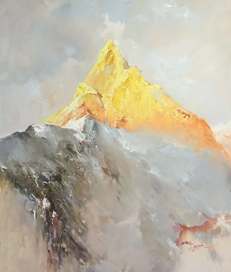 金山在光影里熠熠生辉,浓烈色彩晕染出雄浑质感