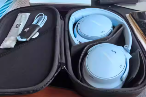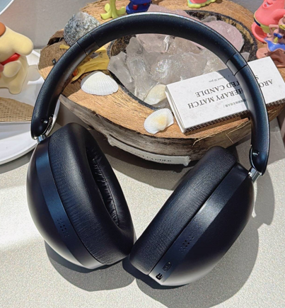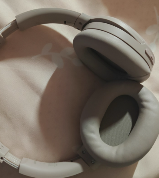佩戴体验:整机约 240g,头梁采用柔软硅胶材质,耳罩为合成皮革包裹厚实记忆海绵,均匀分散重量,减少夹头与压耳感,折叠设计搭配便携包,通勤放背包侧兜、旅游收纳不占地,携带超省心