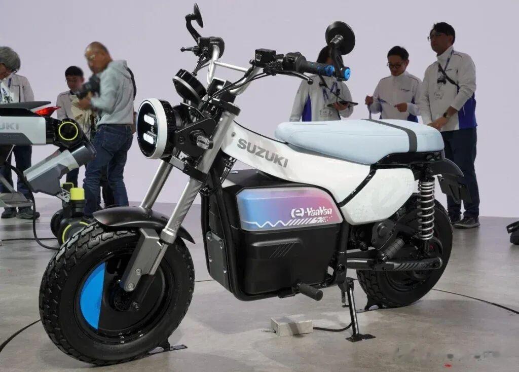 铃木展区中最引人注目的,莫过于e-VanVan。VanVan是1970年代的人气系列,以其粗胖的“气球胎”和纤细车身的前卫设计闻名。e-VanVan便是将其以EV概念在现代复活的车款。