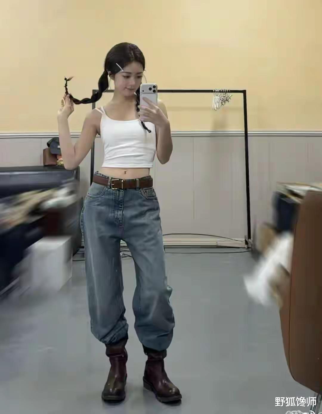 这份身材质感源于长期自律:每日两小时普拉提塑造背肌线条,坚持跳绳控制体脂率在18%,拒绝极端节食的健康管理让她既能撑起高定礼服的优雅,又能适配校园剧的清新感。穿搭上她深谙“放大优势”之道,红毯造型侧重凸显肩颈背线条,日常则以高腰线搭配“上宽下窄”公式,轻松穿出三七分比例,165cm的身高视觉上堪比170cm。