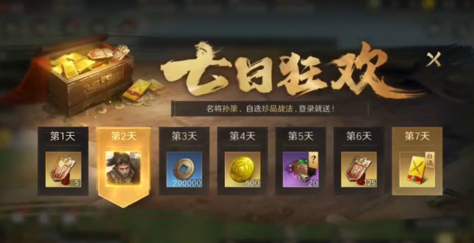 游戏中的七日狂欢活动更是让人眼前一亮。第二天就送上橙将孙策,这对于新手玩家来说,无疑是雪中送炭。孙策的强大战斗力能让新手玩家在前期的战斗中更加轻松,也能让他们更快地熟悉游戏的战斗系统。后续赠送的自选战法包等道具,也让玩家可以根据自己的喜好和需求来打造属于自己的武将。