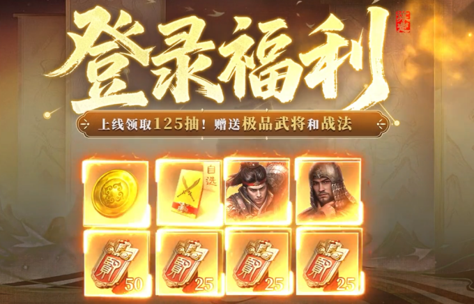 开服豪礼更是让人惊喜连连。前七天免费送抽卡券、黄金、橙将和战法。抽卡券能让玩家有机会抽到更多心仪的武将,黄金能让玩家在游戏里购买各种道具和资源,橙将和战法则能直接提升玩家的战斗力。这些福利对于新手玩家来说,就像是一把把钥匙,能帮助他们打开游戏的大门,快速融入这个三国世界。