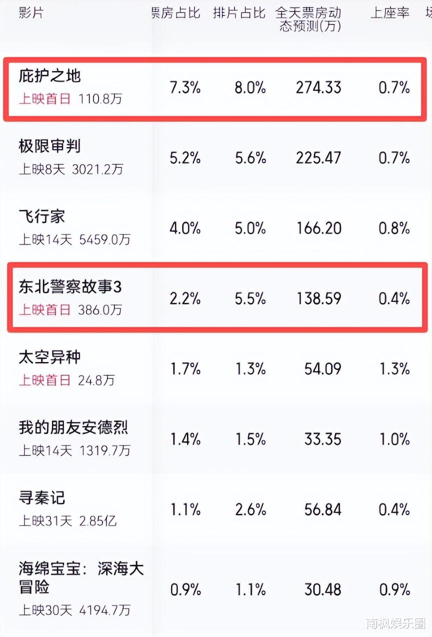 作为新片,《东北警察故事3》的排片甚至还不如《极限审判》,上座率还是几部热门电影中最低的。