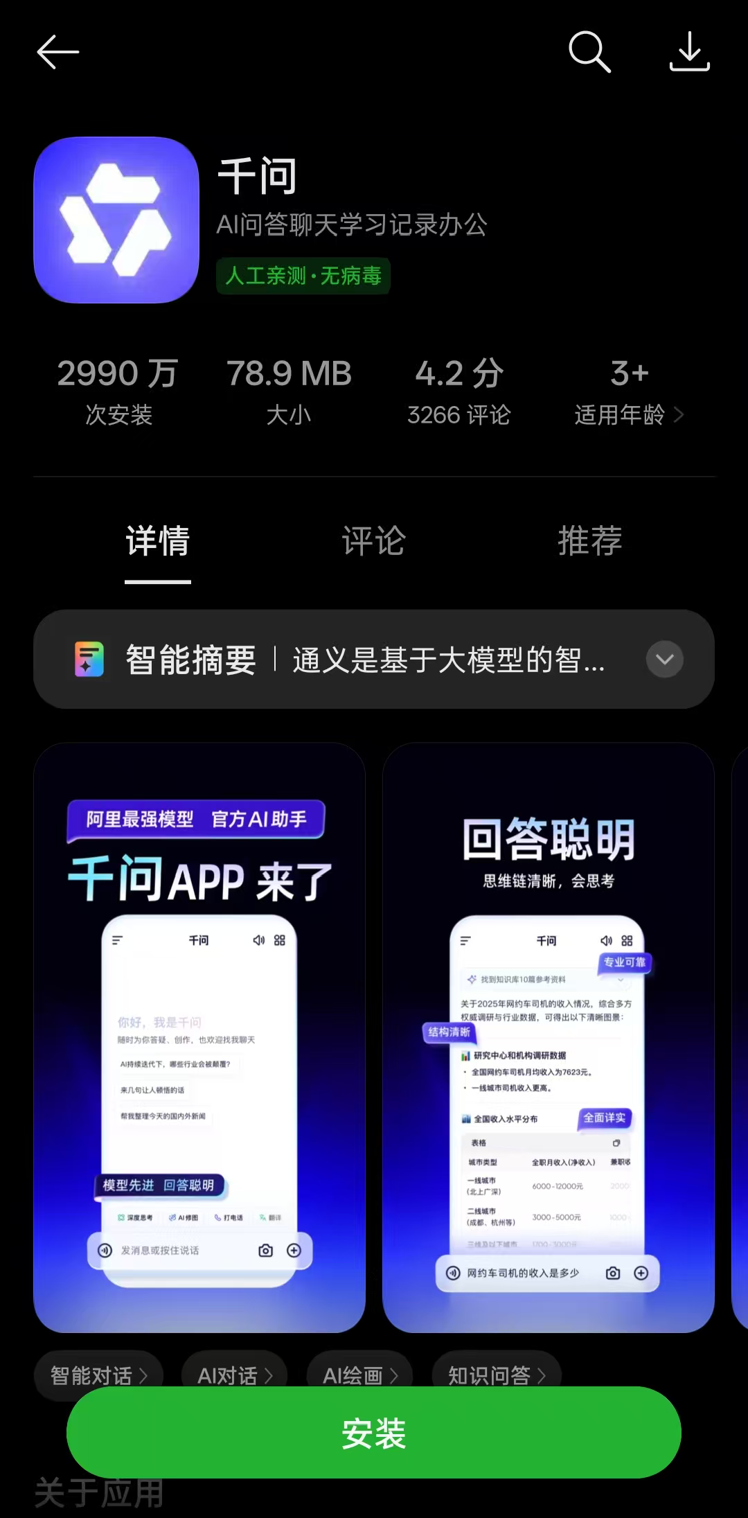 软件应用商店的介绍显示,千问App是阿里最强大模型官方AI助手,是体验最新最强Qwen大模型的第一入口。千问使用阿里最强闭源Qwen大模型,实现真正的“聪明会思考”,让用户无门槛地体验到最新AI技术带来的智能升级,旨在成为用户在工作、学习、生活中的最佳AI助手。