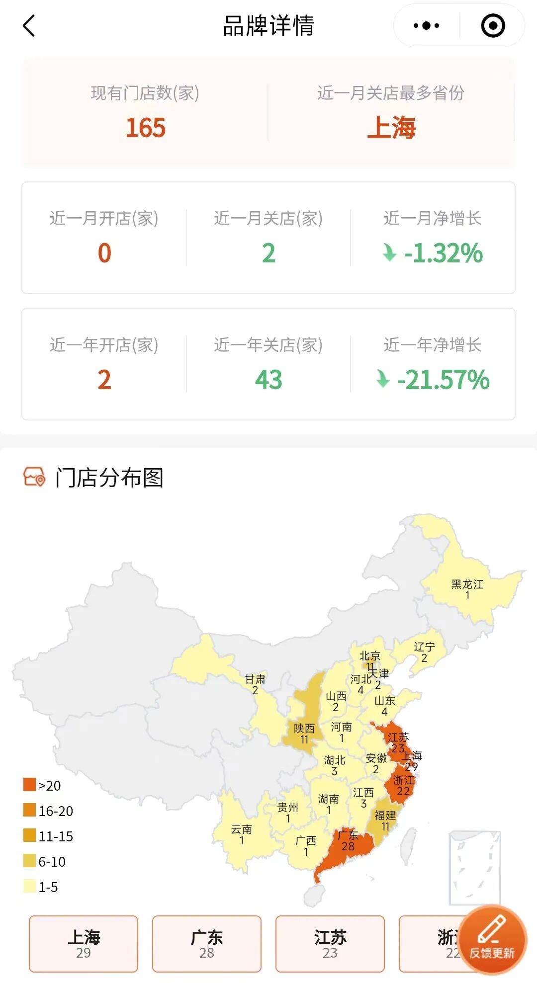 中高端子品牌“湊湊”的情况更不乐观,销售额同比下降25.8%至7.45亿元,同店销售额也下降14%。门店数量从去年6月份的245家不断缩减,至今年12月初门店数仅剩165家,三成多的店面关闭。