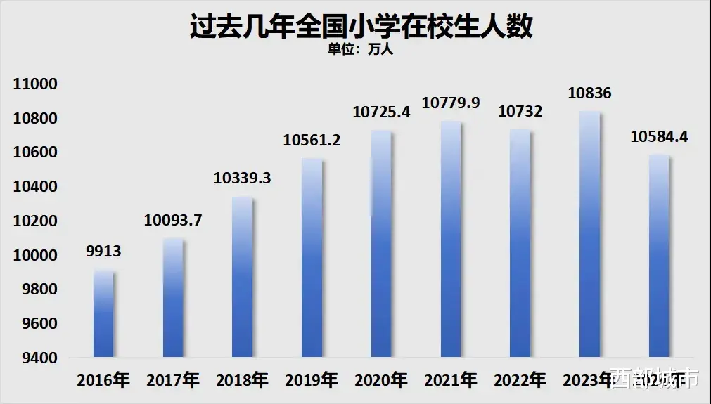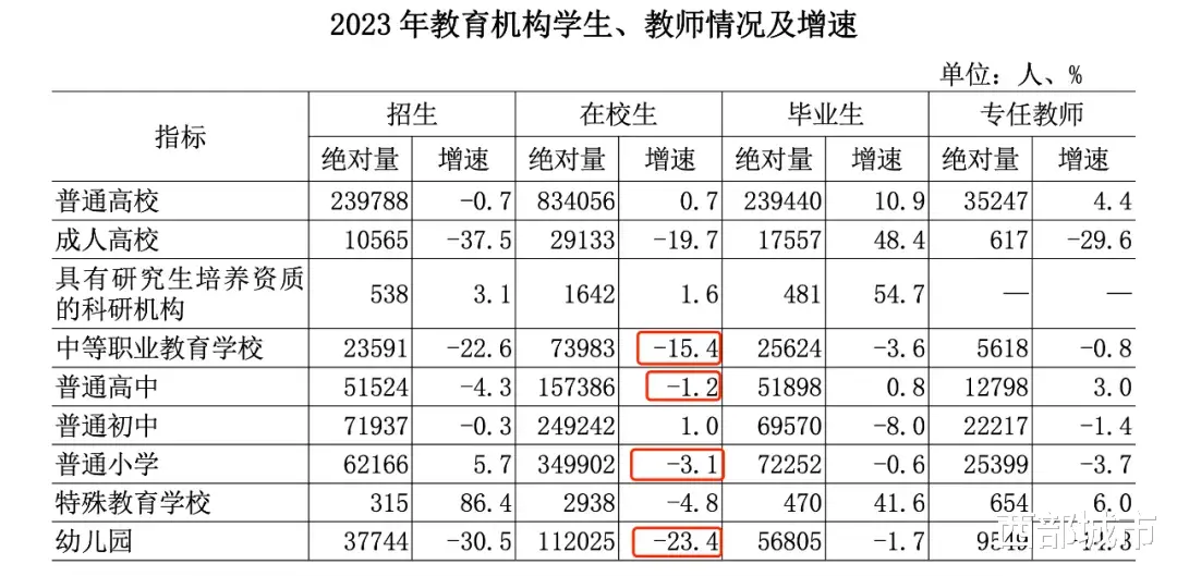 紧随其后的是,小学生在校生人数及学校数量的大幅缩水。