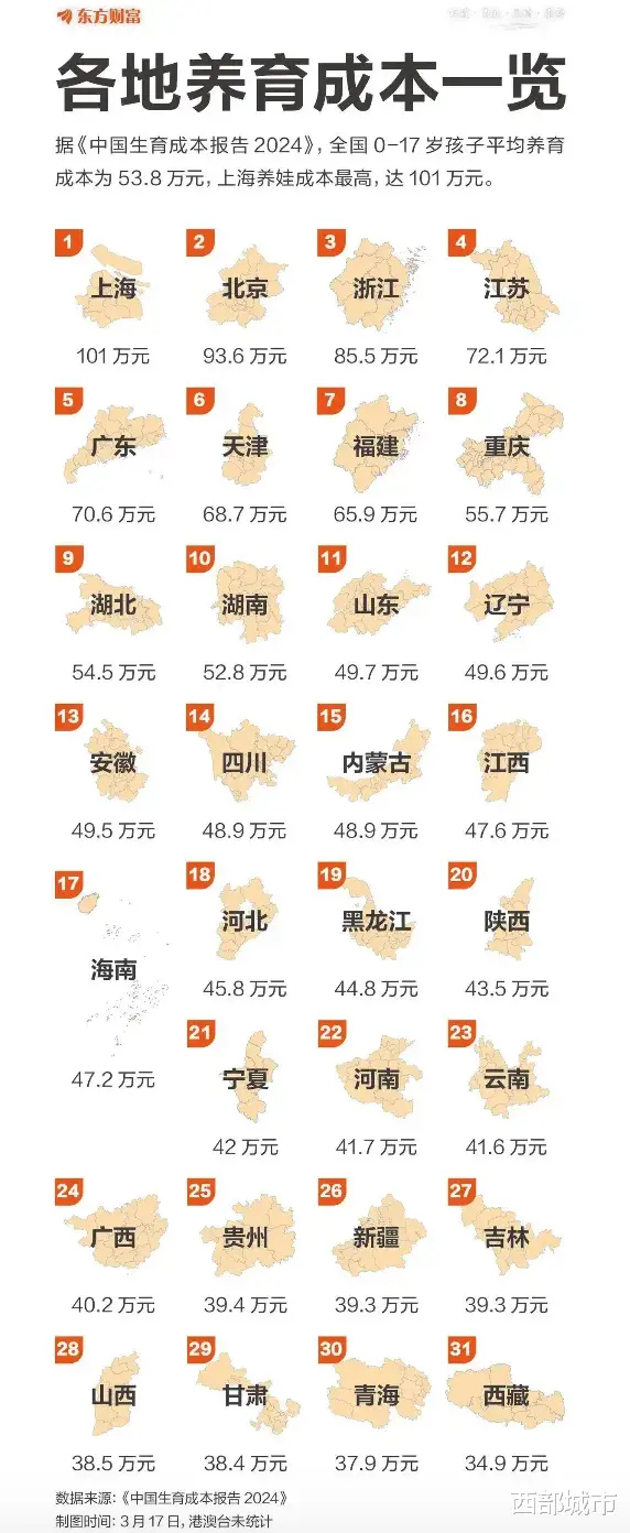 据不完全统计,过去几年,省市层面,全国范围至少已有超20个地方推出了育儿补贴。