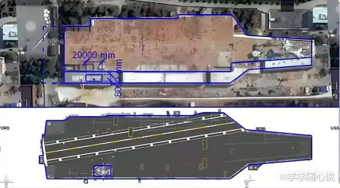 从已曝光的信息来看,004型航母确实展现出了令人惊叹的规模和技术亮点。据国外卫星图片显示,在中国北方某造船厂船台上,出现了一个长度超过70米的巨型船体分段,另一张图片展示的疑似斜角甲板的模块上,清晰可见两条近乎交汇的电磁弹射器导轨槽。这无疑暗示着中国海军第四艘航母——004型航母已进入建造中期阶段。