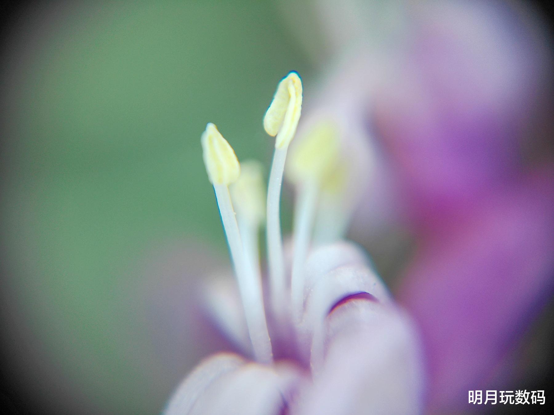 先说明一下,本文所有实测样片都是相机直出,仅调整了尺寸,没有经过后期和裁剪,仅为实测相机画质效果,可能在构图上并不理想。这里,我重点实测了相机的微距镜头,在拍摄这片银杏叶时,拍摄的焦点位于叶片边缘,从实测样片可以看到焦点位置的纹路清晰,边缘过渡细腻。另一张花蕊的样片,也同样表现出色,只是加了微距镜头后,我都是贴着被拍摄物拍摄的,这样很容易产生暗角,想要更加完美就需要后期裁切一下。