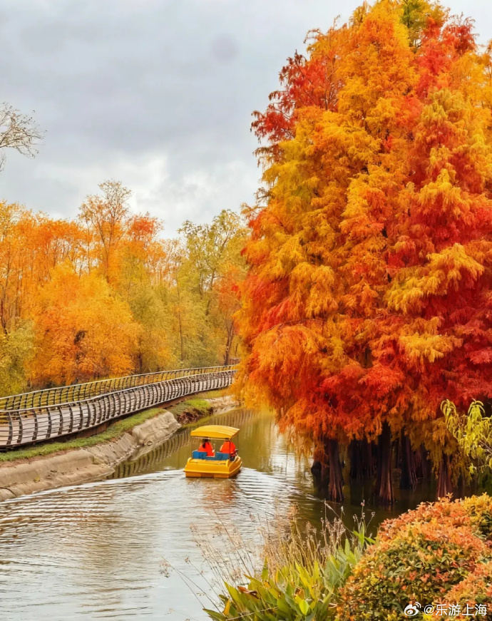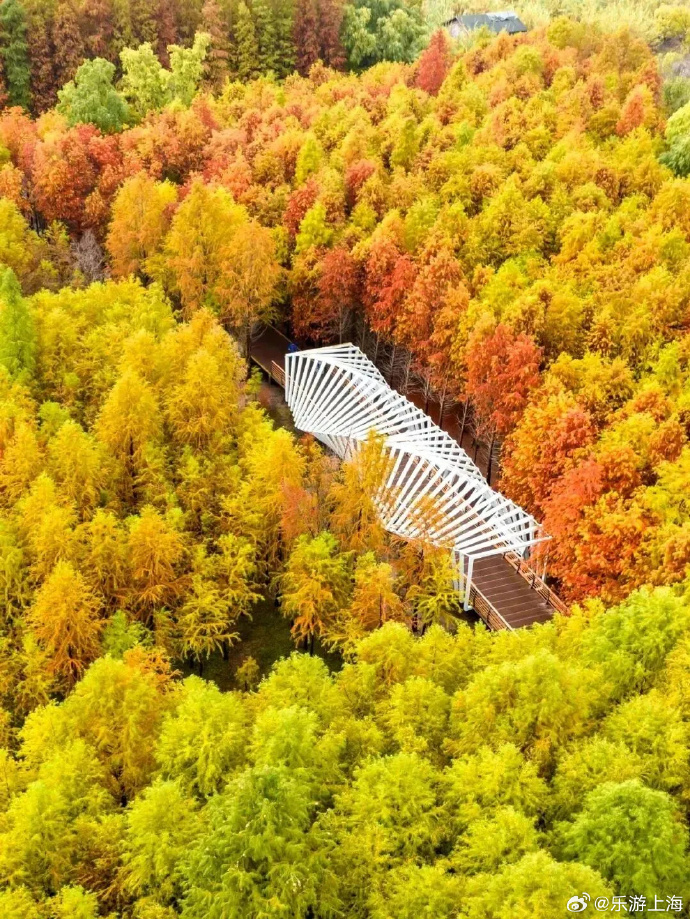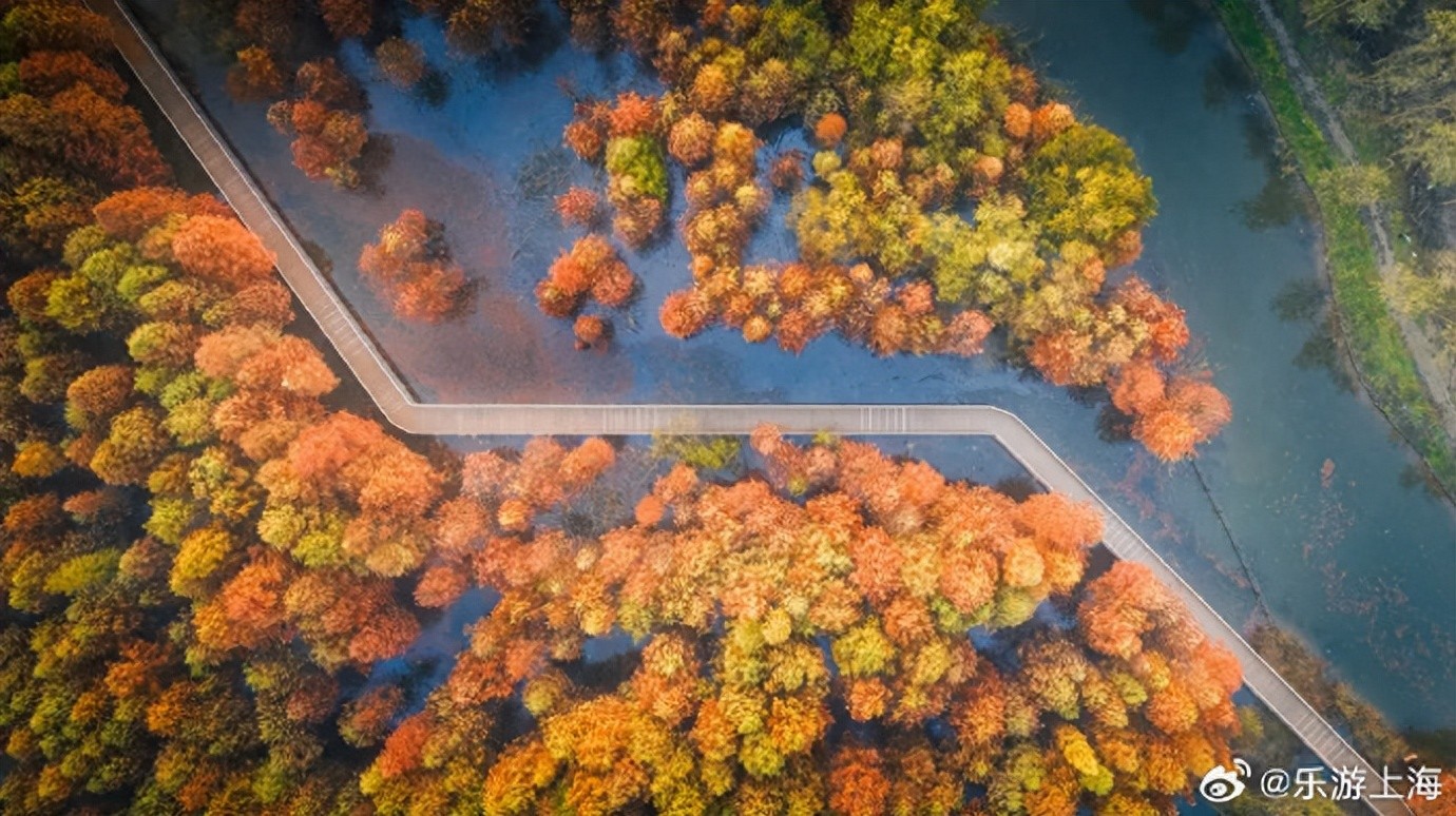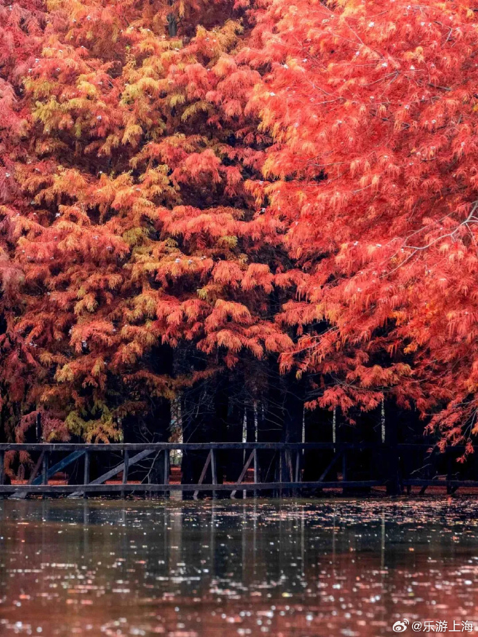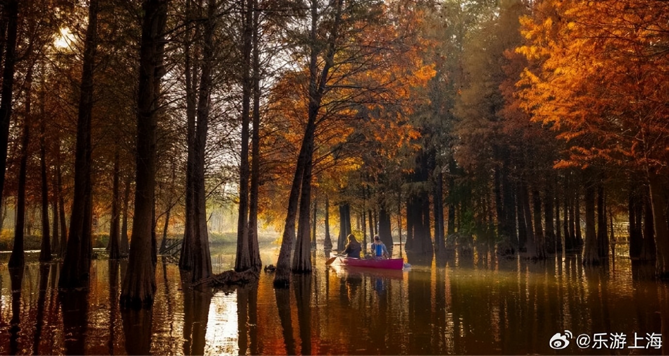 这里的水杉林每年11月开始悄然换装,由绿渐红,层层叠叠,像被打翻的调色盘,