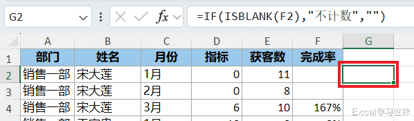 遗憾的是,由于 F2 单元格不是真正的空,而是由公式返回的空值,所以 isblank 并不把它视为空单元格。