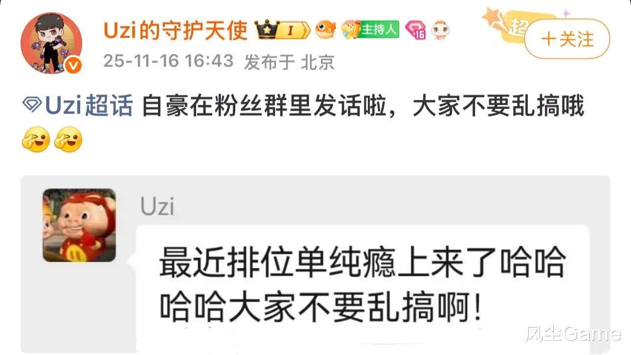 LPL冬季转会期,Uzi被爆复出加盟IG,这一消息引爆舆论之后,被乌兹本人辟谣了,他在粉丝群喊话:最近排位单纯瘾上来了,大家不要乱搞,看来复出这事儿,确实是个假消息,不过这也正常,Uzi现在的实力,已经算不上顶级AD了,要真复出的话,可能连今年Light的水平都达不到。