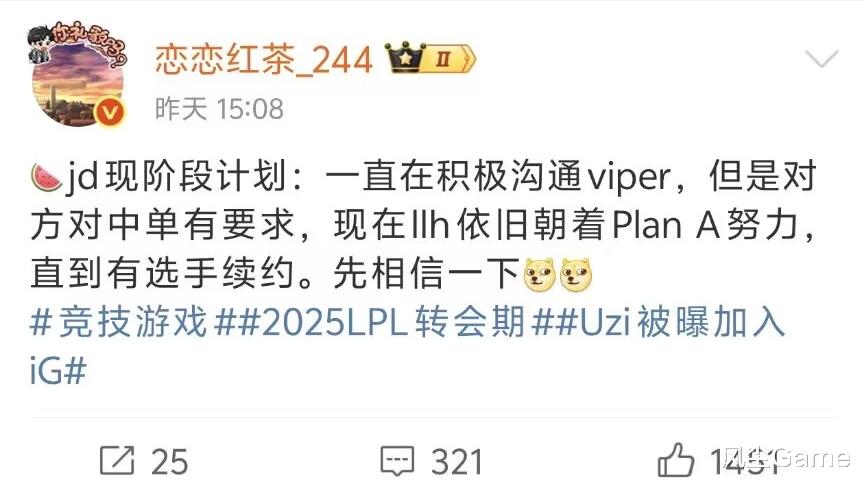 丹尼跑路,IG找不到同水平的教练的话,那明年真就成纯流量队了,中上双韩援的情况下,嘎子留不住,市场上的国产顶级AD,已经完全没有了,连Leave都回EDG了,下路明年找谁打,现在还真是个大问题,这么一看,乌兹好像还真挺合适的。