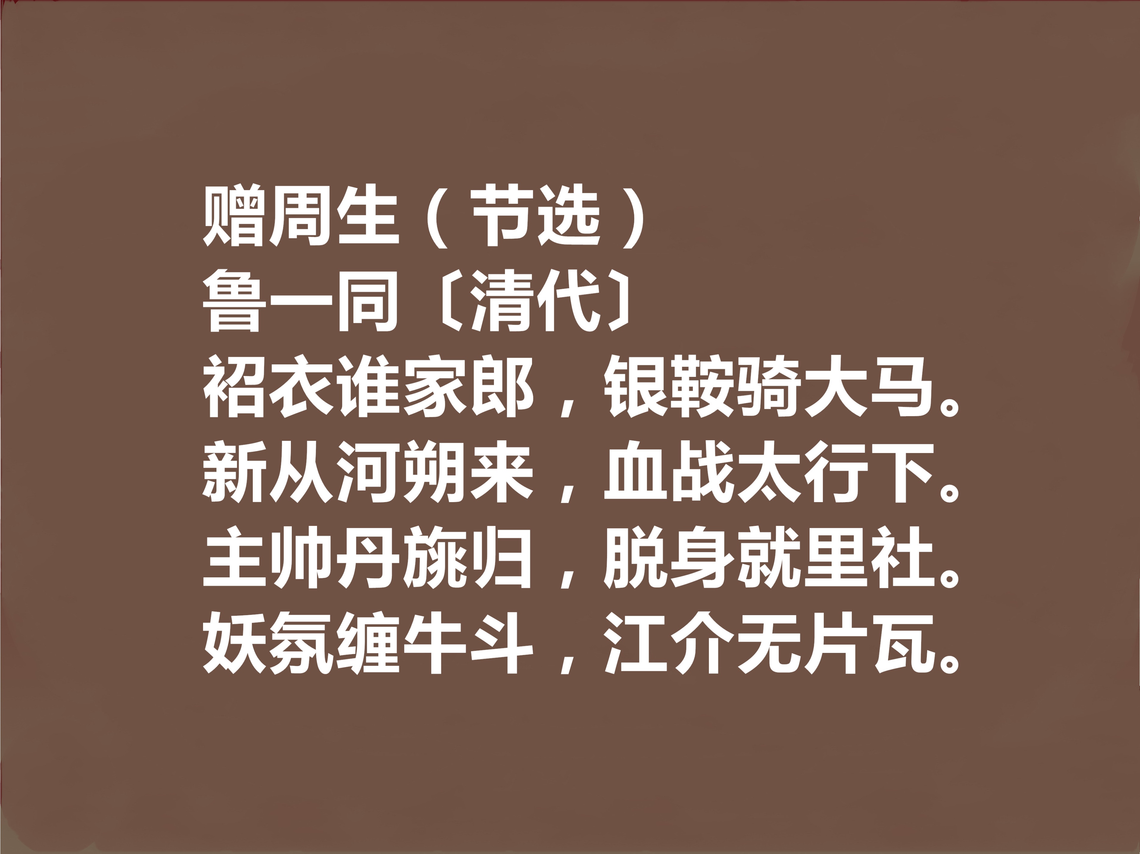 总之,鲁一同以布衣之身,在晚清文坛留下了浓墨重彩的一笔,他的诗歌不仅是个人情感的抒发,更是一个时代的缩影。其作品中蕴含的家国情怀与民生意识,跨越时空,至今仍能引发读者的共鸣,而他“文以经世”的创作主张,也为后世文人提供了宝贵的借鉴,下面欣赏他的十首诗吧。
