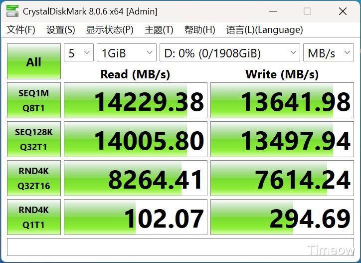 实测读速14200MB/以上,性能非常顶,玩游戏读条肯定没有瓶颈了。