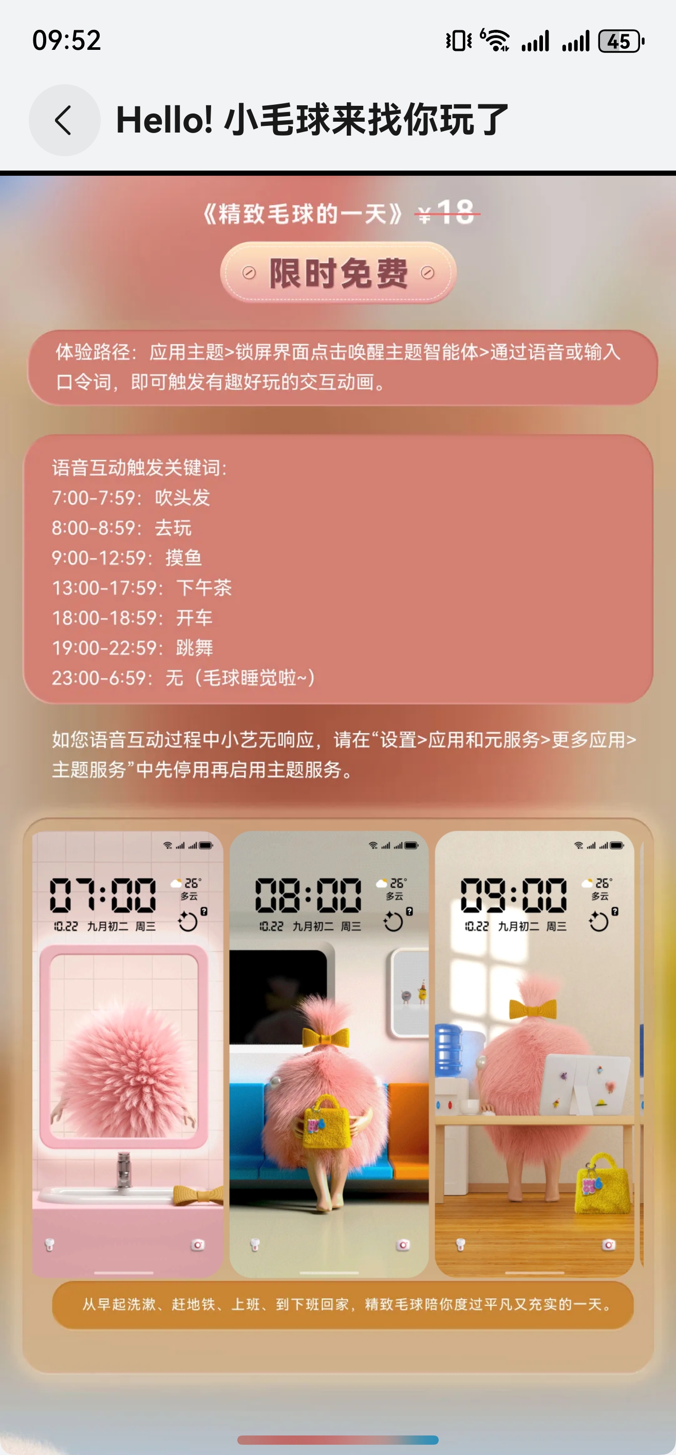 说来有趣,它最吸引我的不是颜值,而是那种“被懂得”的感觉。我的手机锁屏再也不是一张冰冷的图片了。从早上7点它睡眼惺忪地起床,到8点陪我匆匆赶地铁,再到下午1点午休、晚上7点下班……它一天居然能自动切换七个不同的状态,精准地陪我度过每一天的起承转合。每次点亮屏幕,都是一次小小的会心一笑,仿佛有个小家伙在手机里,过着和我同步的生活。