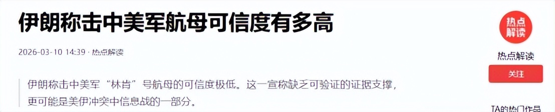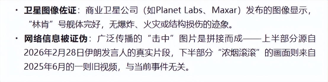 商业卫星也公布了林肯号的卫星图像,现实林肯号没有损毁痕迹,伊朗之所以这么做,其实是在美以联合空袭的压力下,想要通过击伤对方航母的方式提振士气,对外展示自己的抵抗决心和能力,属于低成本的舆论战。