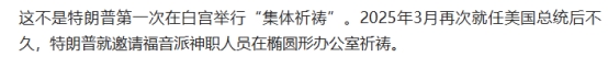 美军老兵被折断手臂其实有关这种大型祈祷的事情,稍微熟悉一点特朗普的人就知道不是第一次,去年刚当选美国总统的时候,特朗普就曾邀请福音派的神职人员在白宫祈祷。