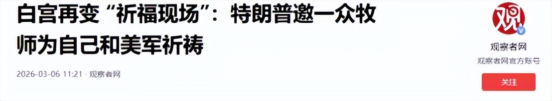 【信源:大河报2026-3-6特朗普邀多位牧师为自己和美军祈祷:牧师们站在特朗普周围将手搭在彼此身上