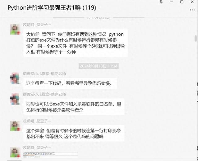 二、实现过程这里【瑜亮老师】给了一个指导,如下所示:这个得查一下代码,看看哪里导致代码变慢。同时也可以把exe文件加入杀毒软件的白名单。避免运行的时候被杀毒软件查杀