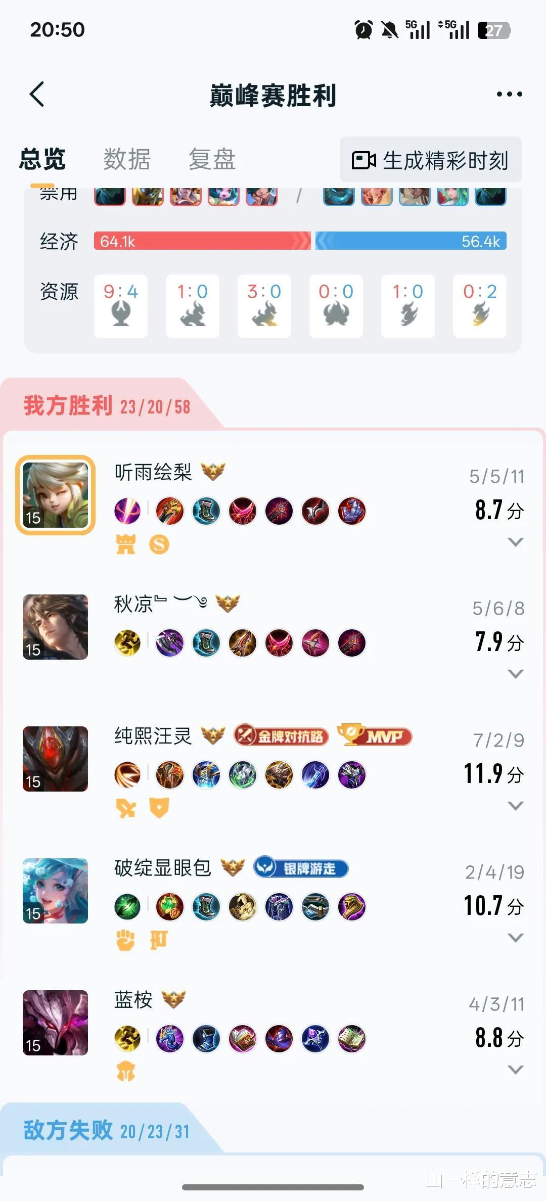所以今天巅峰赛给我的感觉还是比较满意的,我打了5把巅峰赛,基本上全都赢。了,虽然中间可能有一些小插曲,但是不影响。