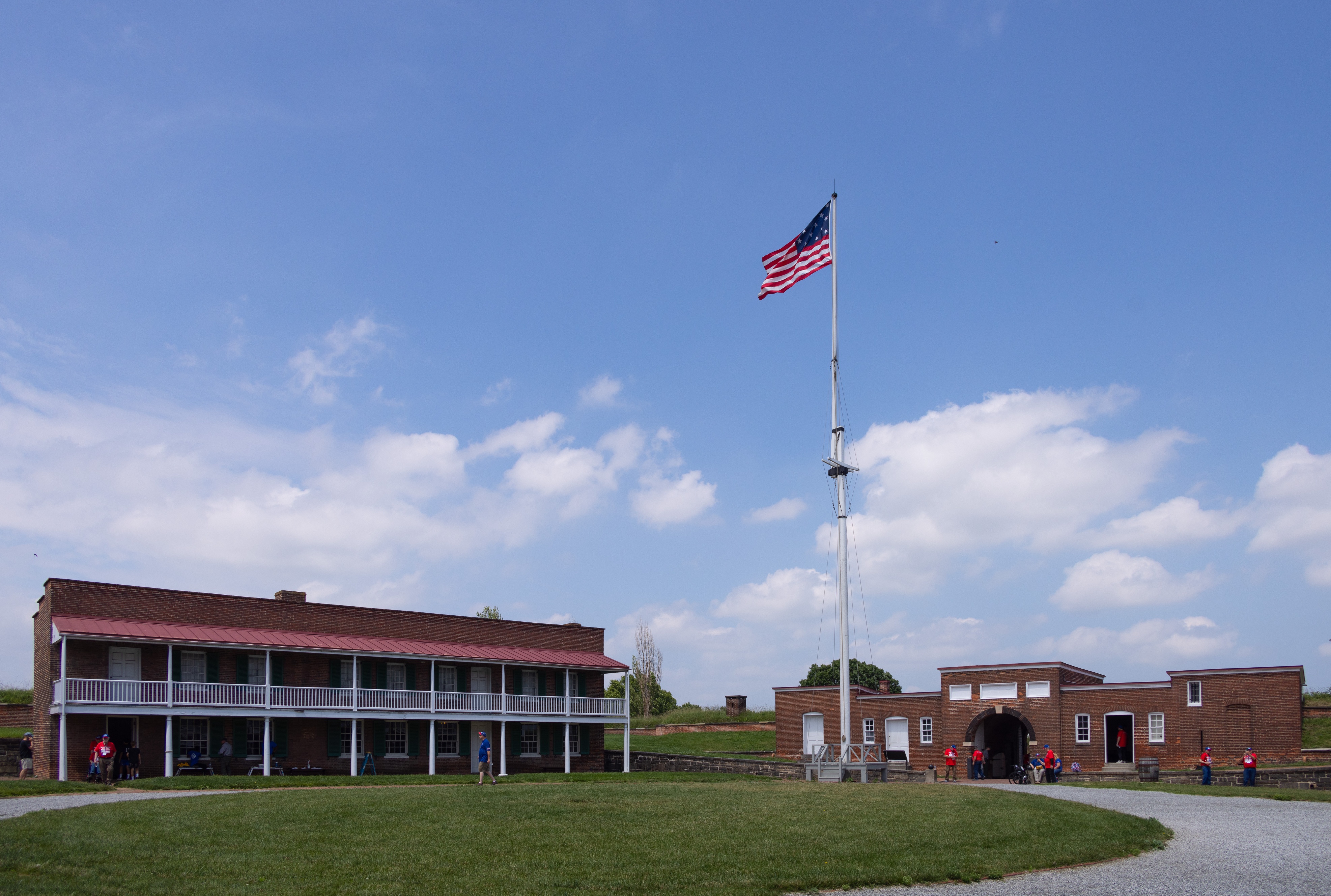 麦克亨利堡(Fort McHenry National Monument and Historic Shrine)位于马里兰州巴尔的摩(Baltimore)东南部,三面环水,是一座具有两百年历史的军事堡垒。在1814年第二次英美战争期间的巴尔的摩之战中,该堡垒成功抵御英军进攻,现今,麦克亨利堡作为国家纪念和历史圣地,保留着当年的军事设施和历史文物。