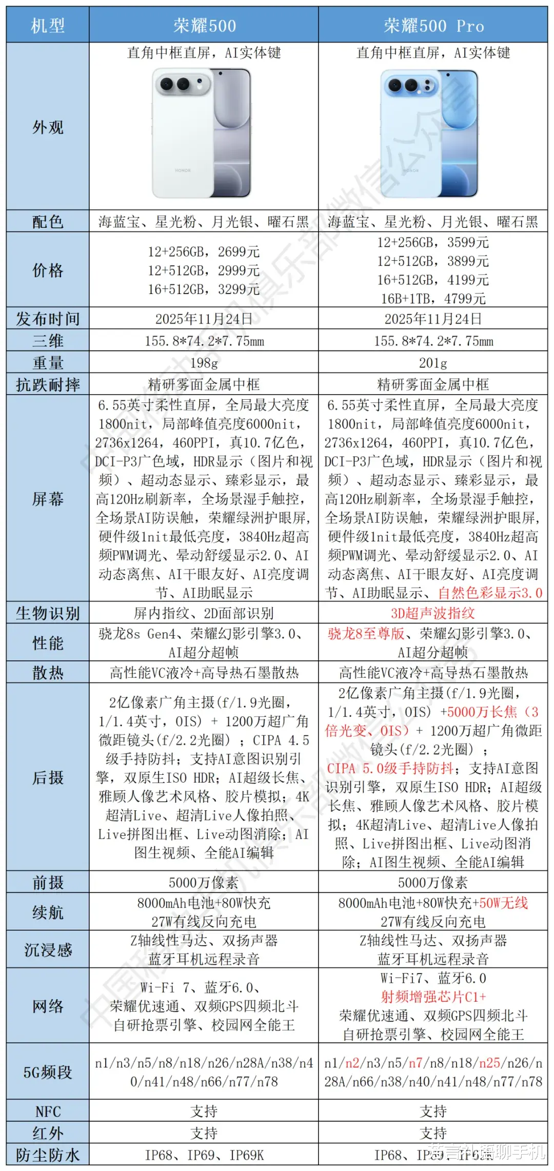 评价:荣耀500 Pro相当于电池变大了的上一代旗舰机,该有的都有,全能机型。