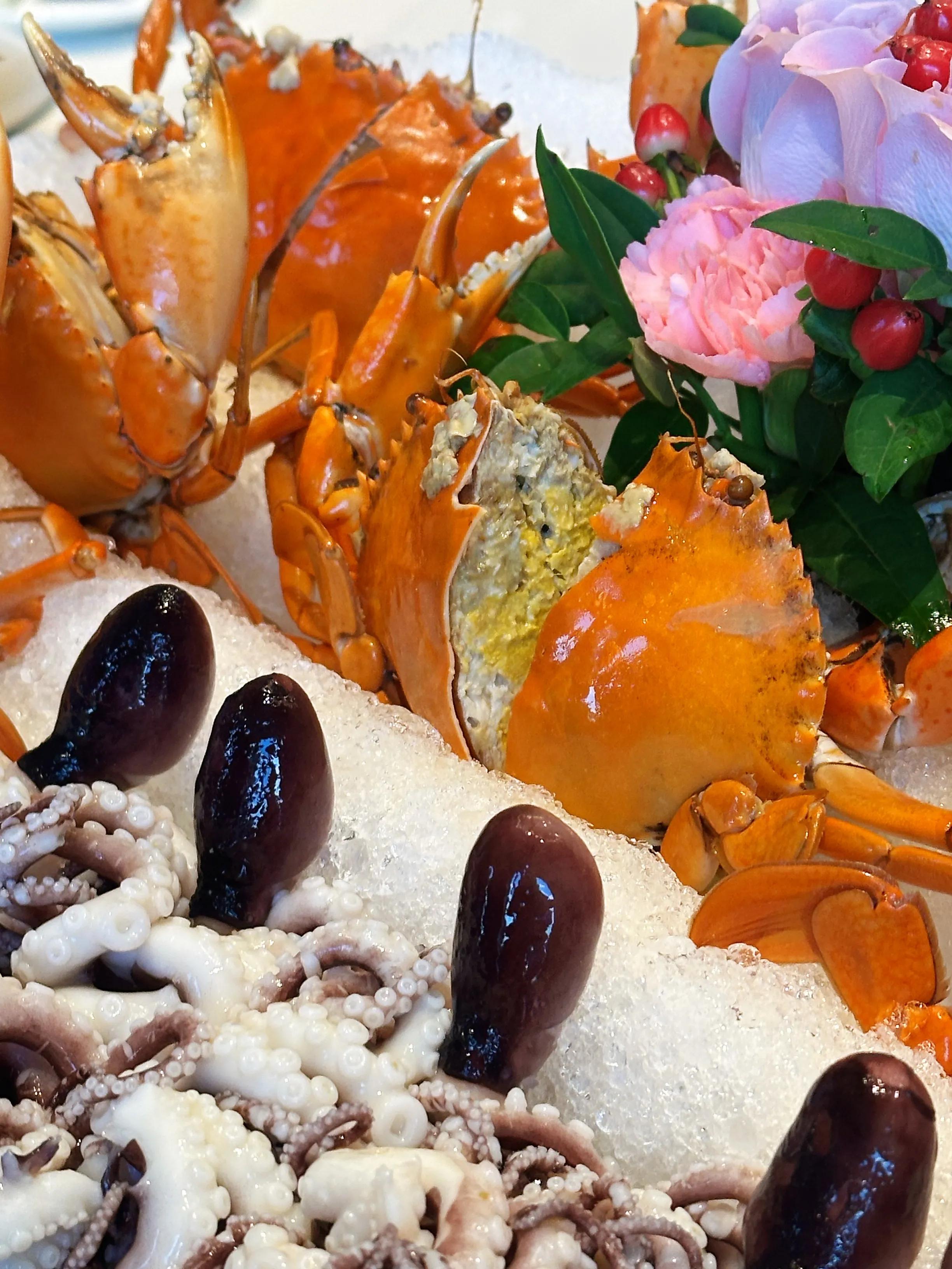 金钩翅同安桂花炒:堂烹现做,镬气升腾。三蟹拆肉、翅丝莹润,银芽清脆,298元/位,需提前预定。