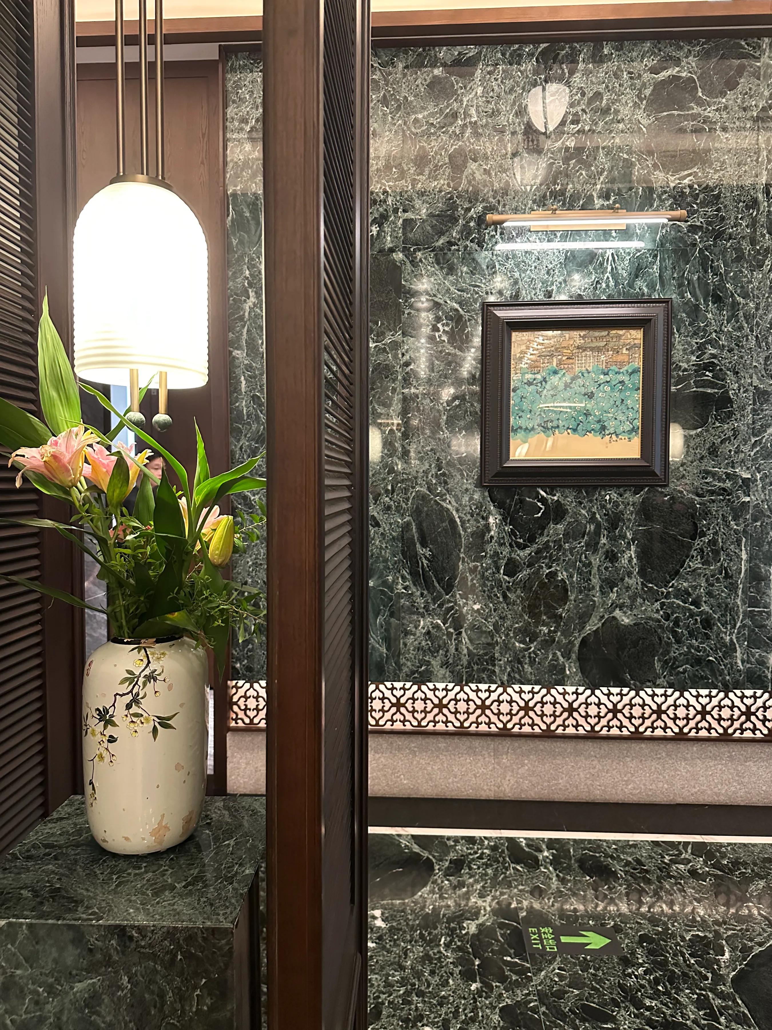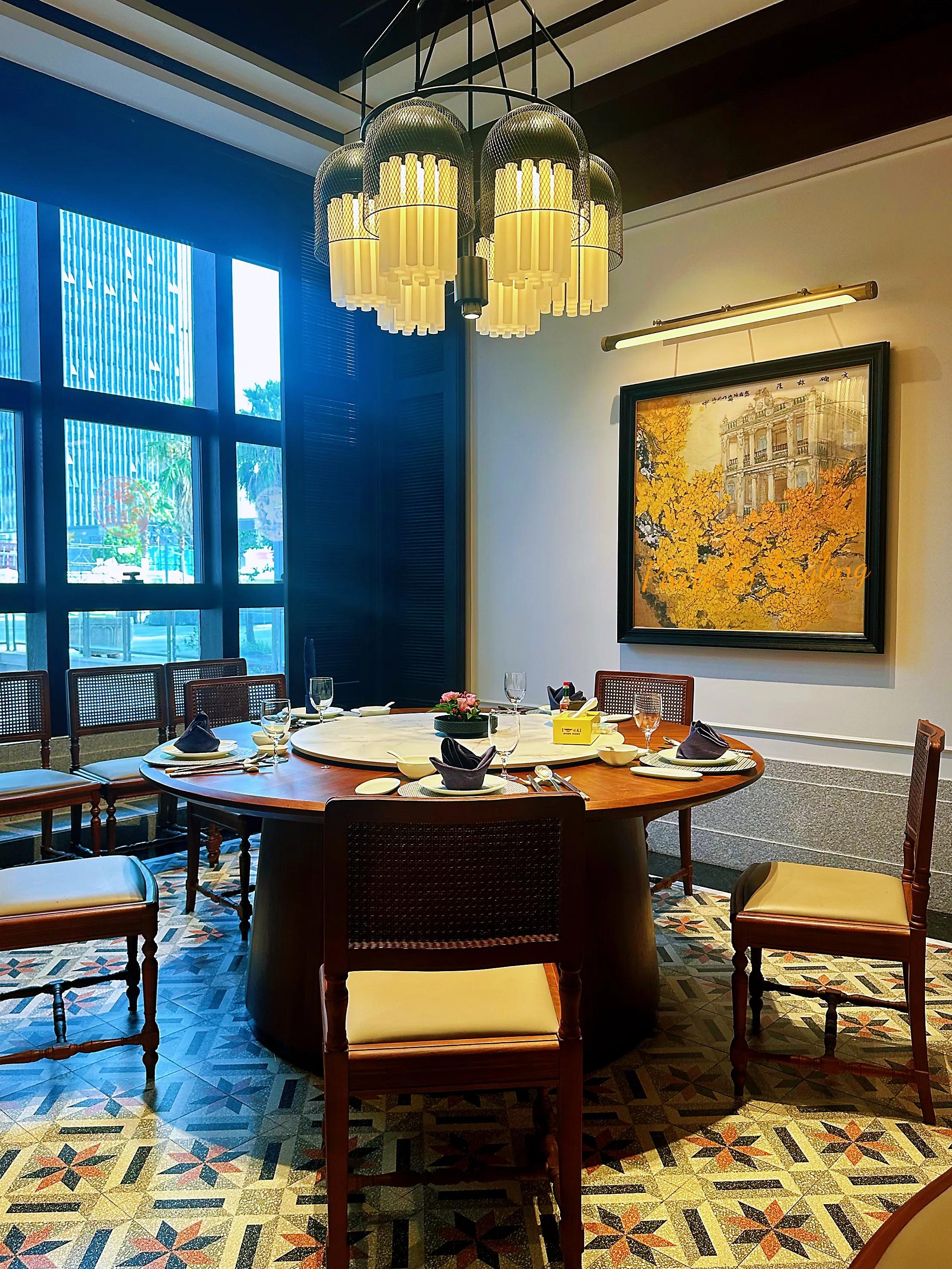 三十二载沉淀,味友以全新“味友闽宴”静呈一方闽地风雅。不刻意张扬,却自有底蕴流淌——嘉庚风骨融于砖墙弧线,南洋骑楼映衬温润光影,花砖地面对撞出复古而优雅的韵律。十间包厢,匠心打磨,命名皆取自“嘉庚”“敬贤”,闽南人文脉络悄然承续。实木家具、金丝软包、主题壁画细微处见质感,更值得一提的是,每间包厢均配备专属管家提供细致周到的服务,连海鲜池也以电子动画静默诉说新鲜。于此宴聚,从容之中,气韵自生。