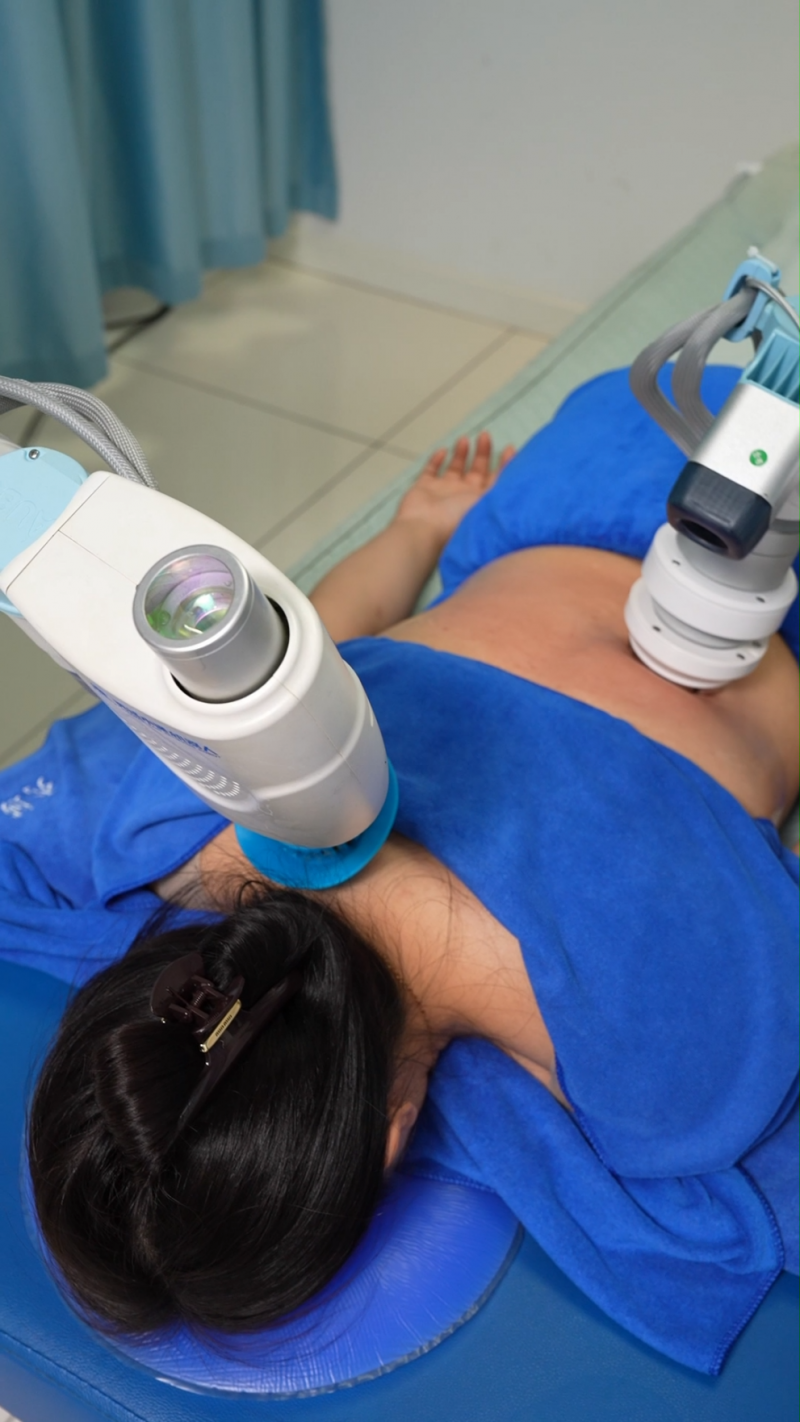 她给我推荐了小通机器人+超V热动力的组合。小通机器人负责深层松解筋膜,超V负责温补巩固,一松一养,专门针对我这种情况。