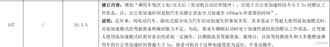 该征求意见稿的编制说明中提到,近年来,纯电动汽车、插电式混合动力汽车启动加速失控事故多发,其多是由于驾驶人使用高加速模式时,对高加速模式的驾驶准备和操控能力不足。为此,要求车辆刚启动时处于加速性能较低的默认工作状态,让驾驶人使用高加速模式时需有意识的采取一定操作,以期提高其驾驶准备。