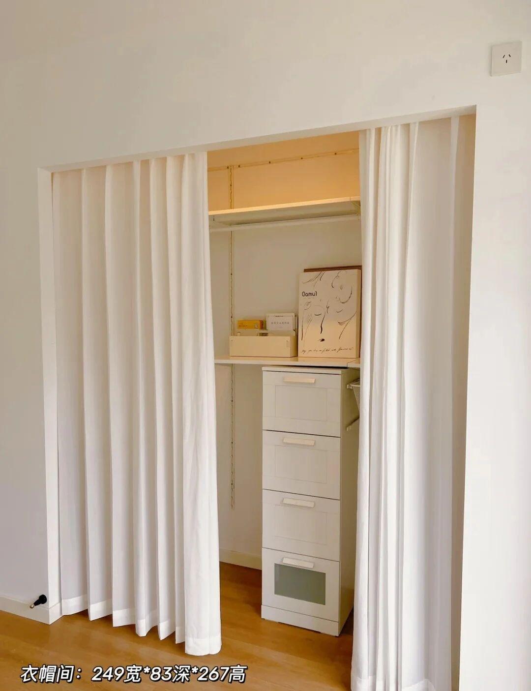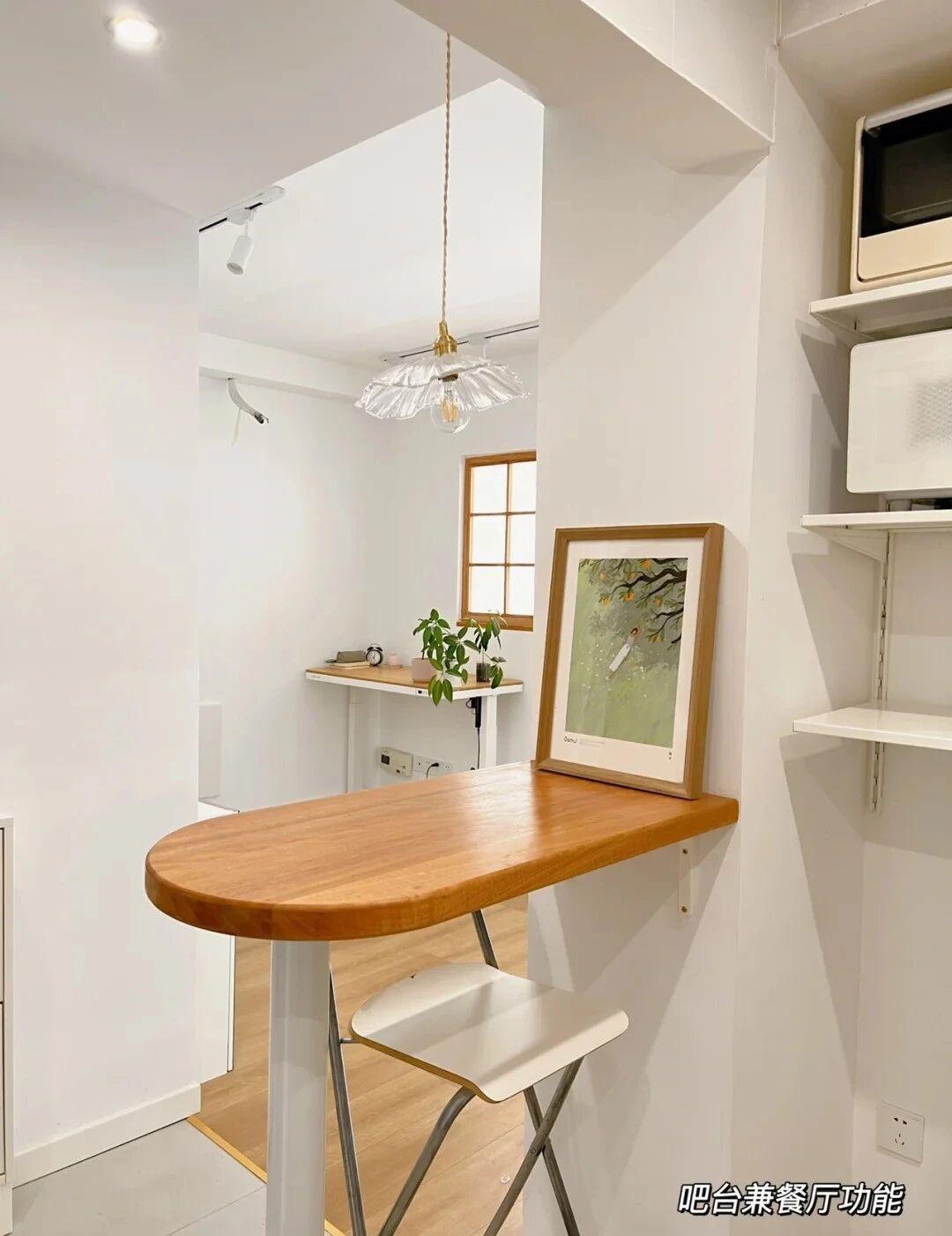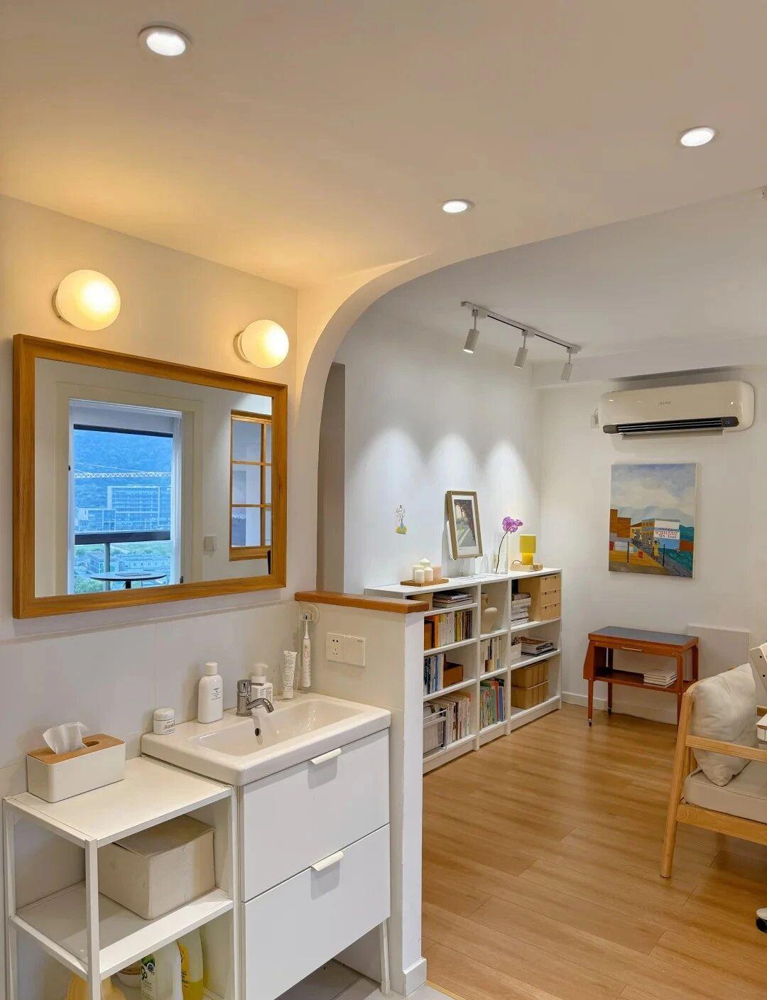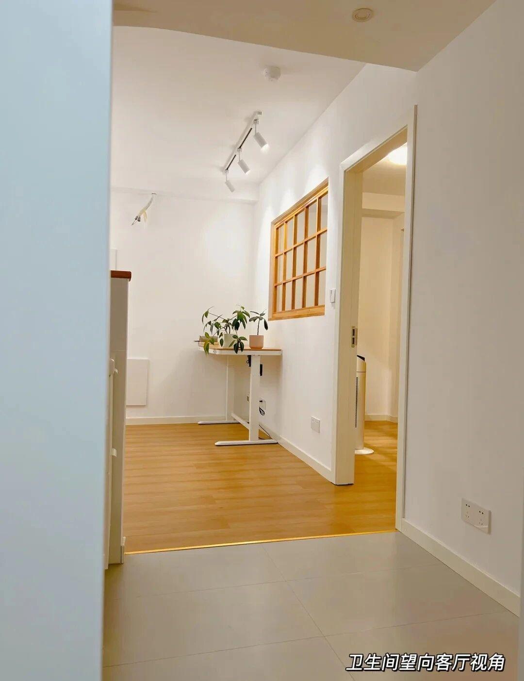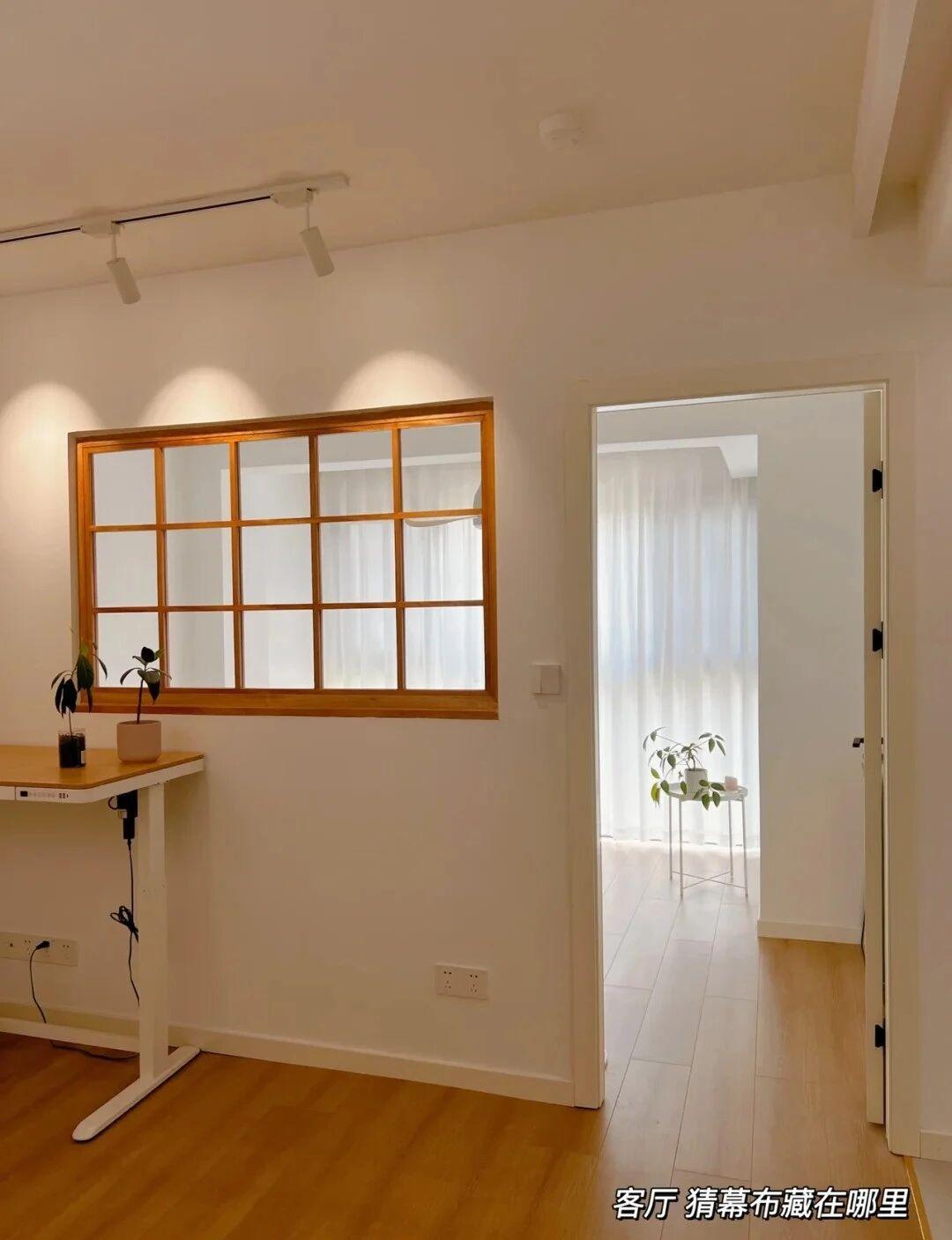 这一点,也非常值得小户型的屋友参考,个别功能区如果没有窗户,那么就可以似博主一样,安装一个半墙隔断,在中部留一个孔洞,安装上透明玻璃,这样阳光就可以挥洒进来;