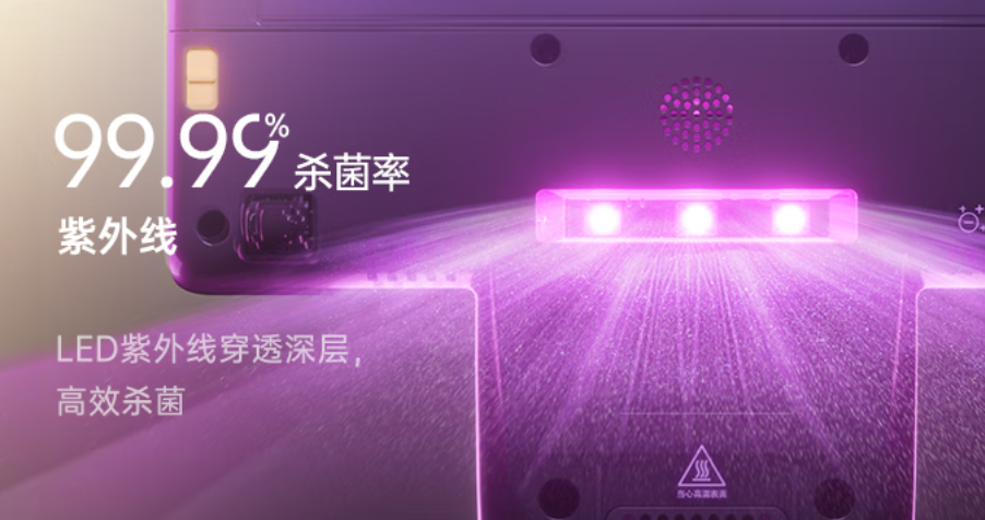 ▶ 搭载每分钟 48000 次高频拍打,配合 18000Pa 超大吸力,能强力剥离深层螨虫、灰尘与毛发,再加上 55℃热风除湿功能,快速降低织物湿度,破坏螨虫生存环境。UV-C 紫外线 + 超声波联合消杀,实现 99.9% 除螨率与 99.99% 杀菌率,清洁更彻底。
