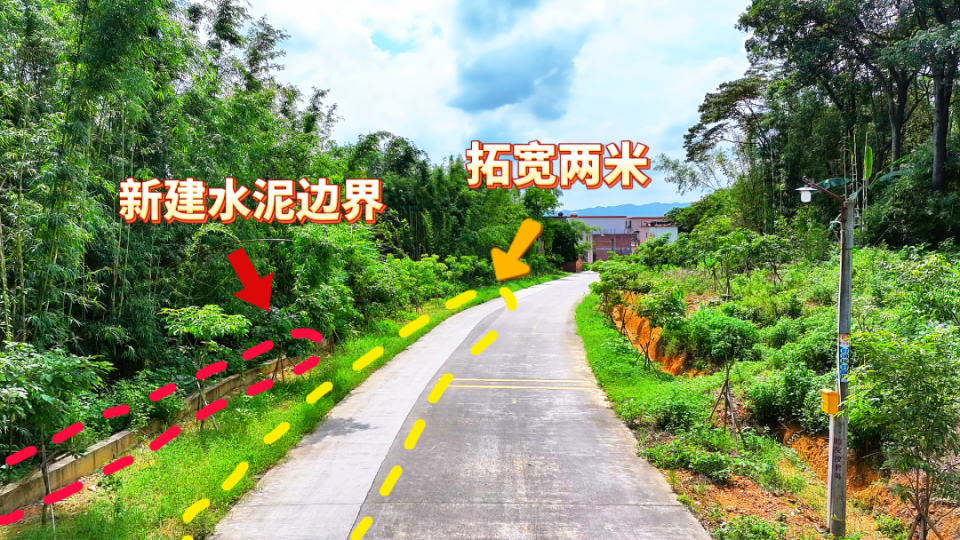 很快,政府对道路拓宽了2米。村民们并未就此满足,而是齐心协力,把道路建设得更加完善。林荣庆表示,根据村里的集体收入情况,村民们积极筹集资金,最终筹集了近4万元。村里利用这笔资金,建设了水泥基作为边界,与邻村明确划定了地界权属,清晰界定了双方的权利和责任。