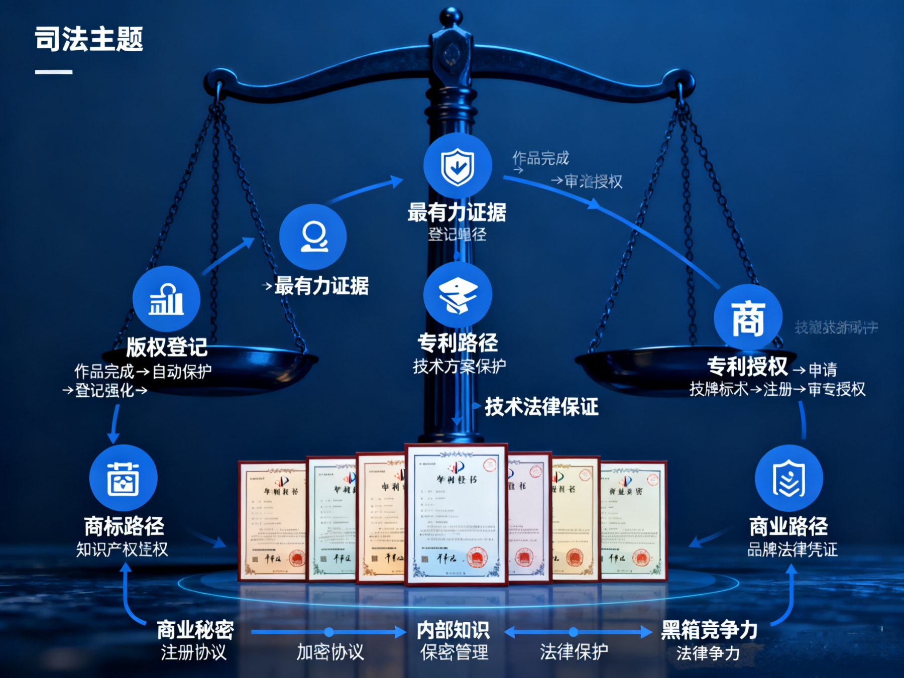 著作权: 对完成的作品及时进行版权登记。虽然作品自完成之日起自动受保护,但登记证书是诉讼中证明权属的最有力证据。