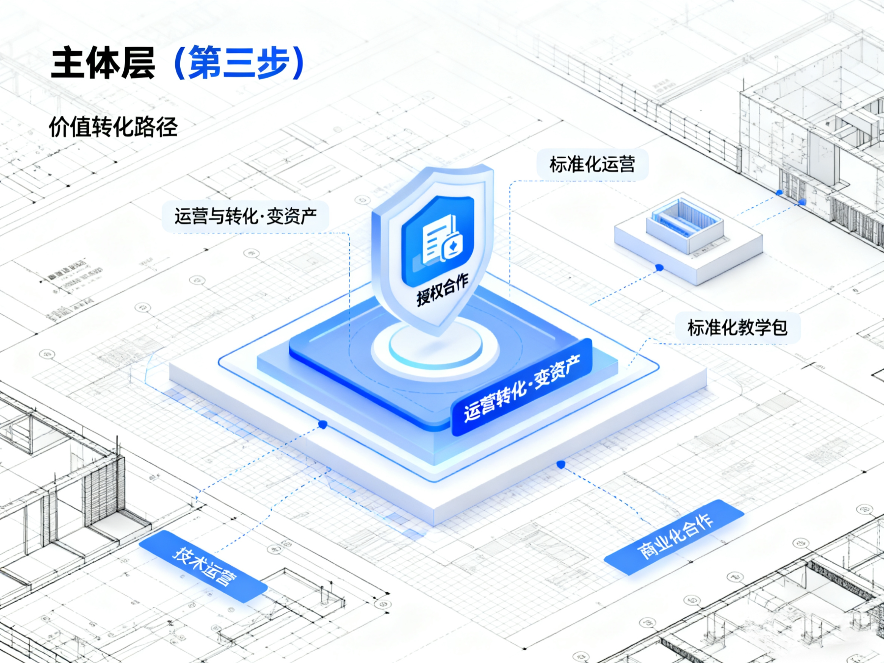 内部赋能: 将受保护的课程体系、教学标准进行标准化、模块化封装,形成可快速复制输出的"教学包",这是进行异地扩张、加盟合作的技术前提。