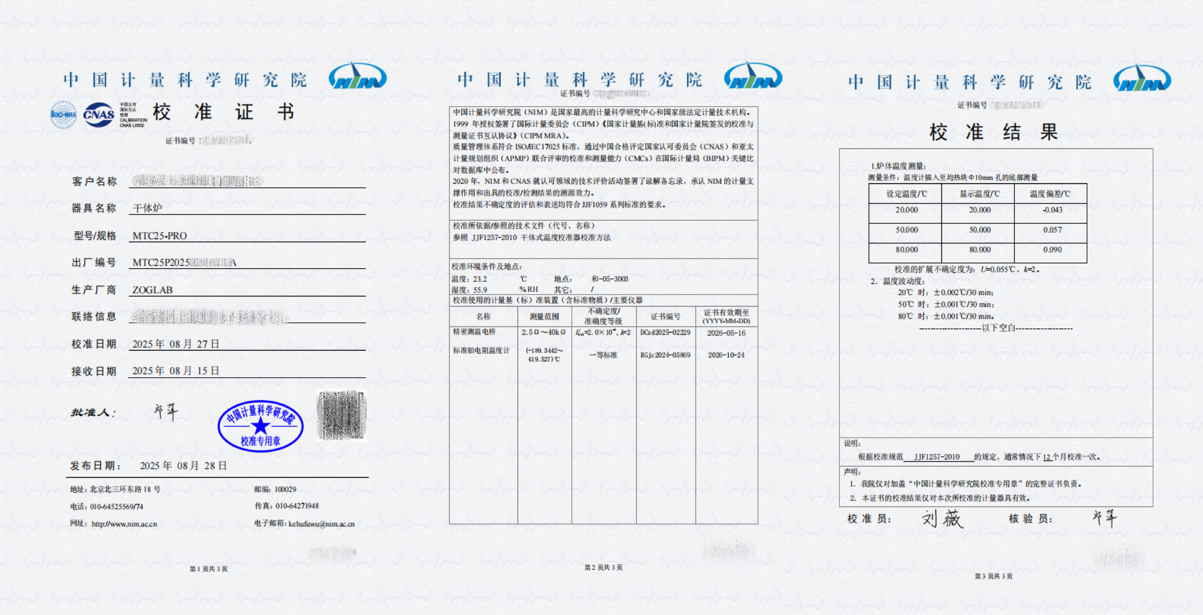 MTC25便携式温度校准炉校准证书