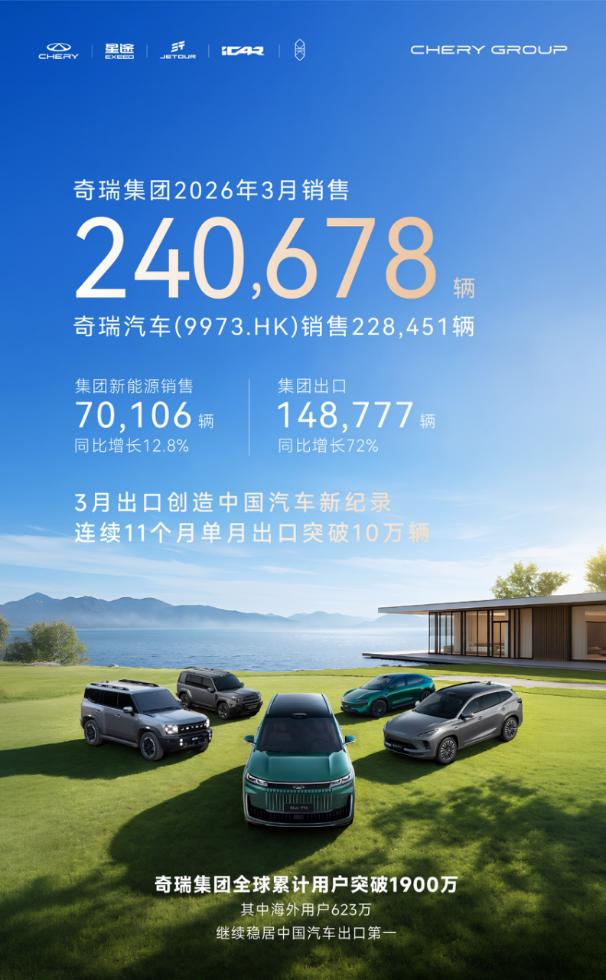 以1900 万全球用户为根基以技术全链落地为核心,奇瑞集团一季度增长不再是单一销量数字增长,而是新能源转型高端化突破全球化引领技术创新落地的全维度价值增长。这份成绩单既是过往努力辉煌注脚,更是迈向未来崭新起点。从量变到质变,奇瑞一季度价值跃升为中国品牌全球化提供了可复制路径。这份 3 月成绩单值得行业深入研究。