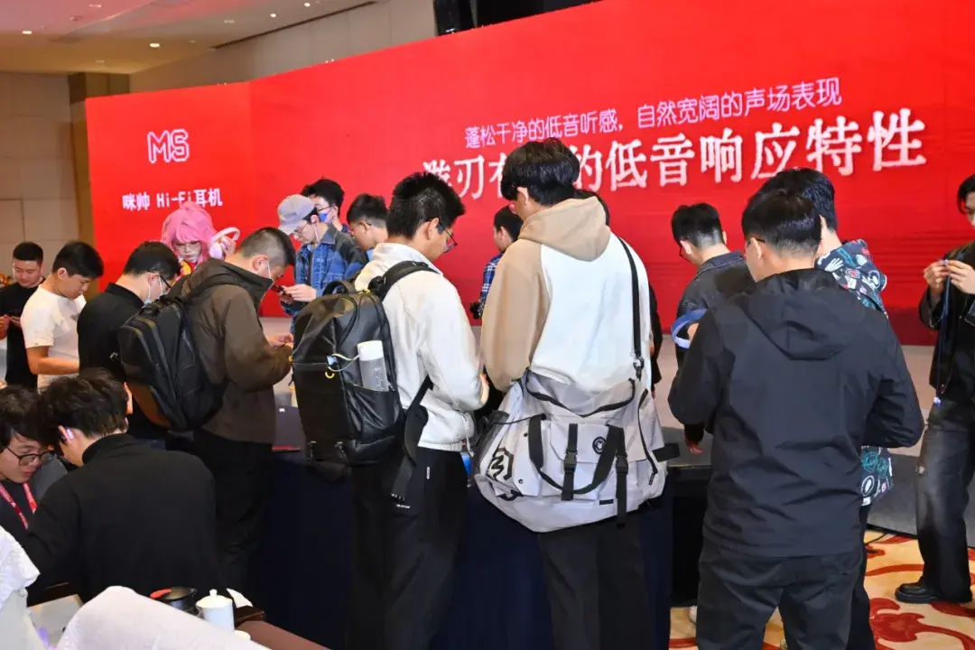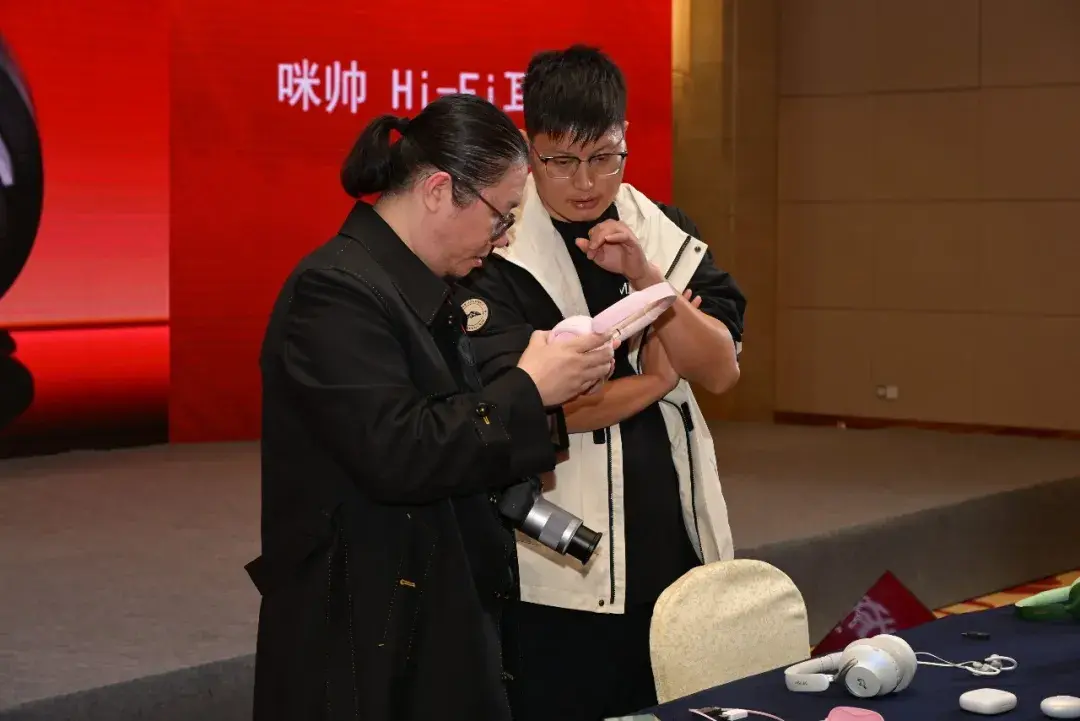 不少人试听后迟迟不愿离开,要么用手机拍摄耳机的细节纹路,准备分享到自己的烧友社群。甚至有几位外地赶来的发烧友,特意带了便携耳放,只为在现场搭配新品测试最佳音效。