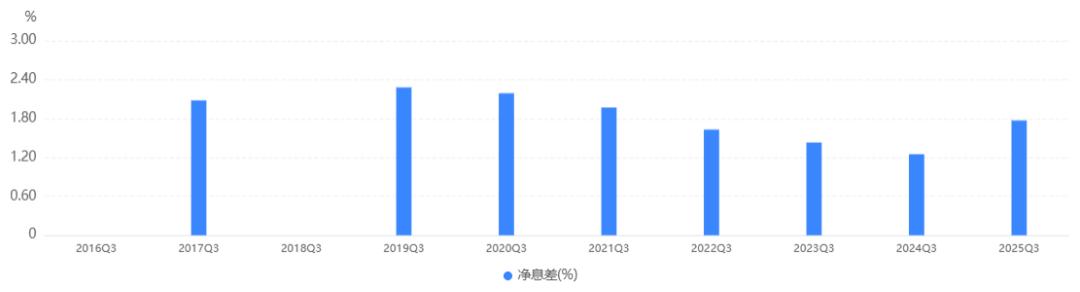 2025年前三季度,该行实现利息净收入63.10亿元,同比增幅达61.6%。其在总营收中的占比也从70.6%提升至82.1%,成为拉动增长的决定性力量。相比之下,非利息净收入有所回落,同比减少2.43亿元,占比收窄至17.9%。