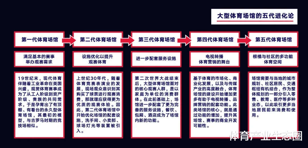 早在2005年,全球知名的体育场馆设计师罗德·希尔德(Rod Sheard)先生就提出了「运动空间五代进化论」。体育场馆由最初满足基本赛事和观赛需求,逐步被赋予社交、休闲、商业化、电视转播等功能,最终进化至第五代模式——即成为城市与社区发展的重要工具。