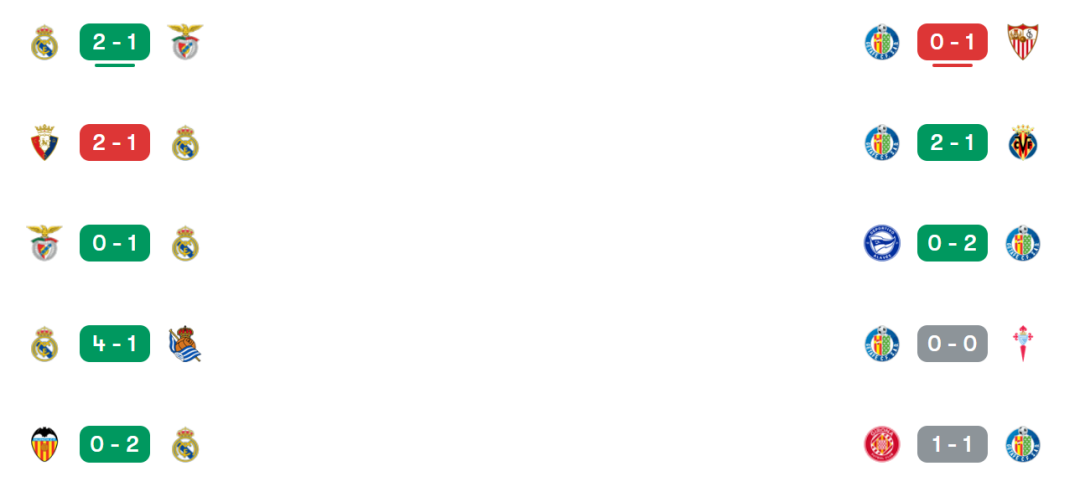 双方近8次交手皇马保持全胜,赫塔费上一次在伯纳乌取胜还要追溯到2008年。本赛季首回合,皇马客场1-0小胜,而近4次主场对阵赫塔费,皇马两次1球小胜、两次2球完胜,展现出稳定的压制力。
