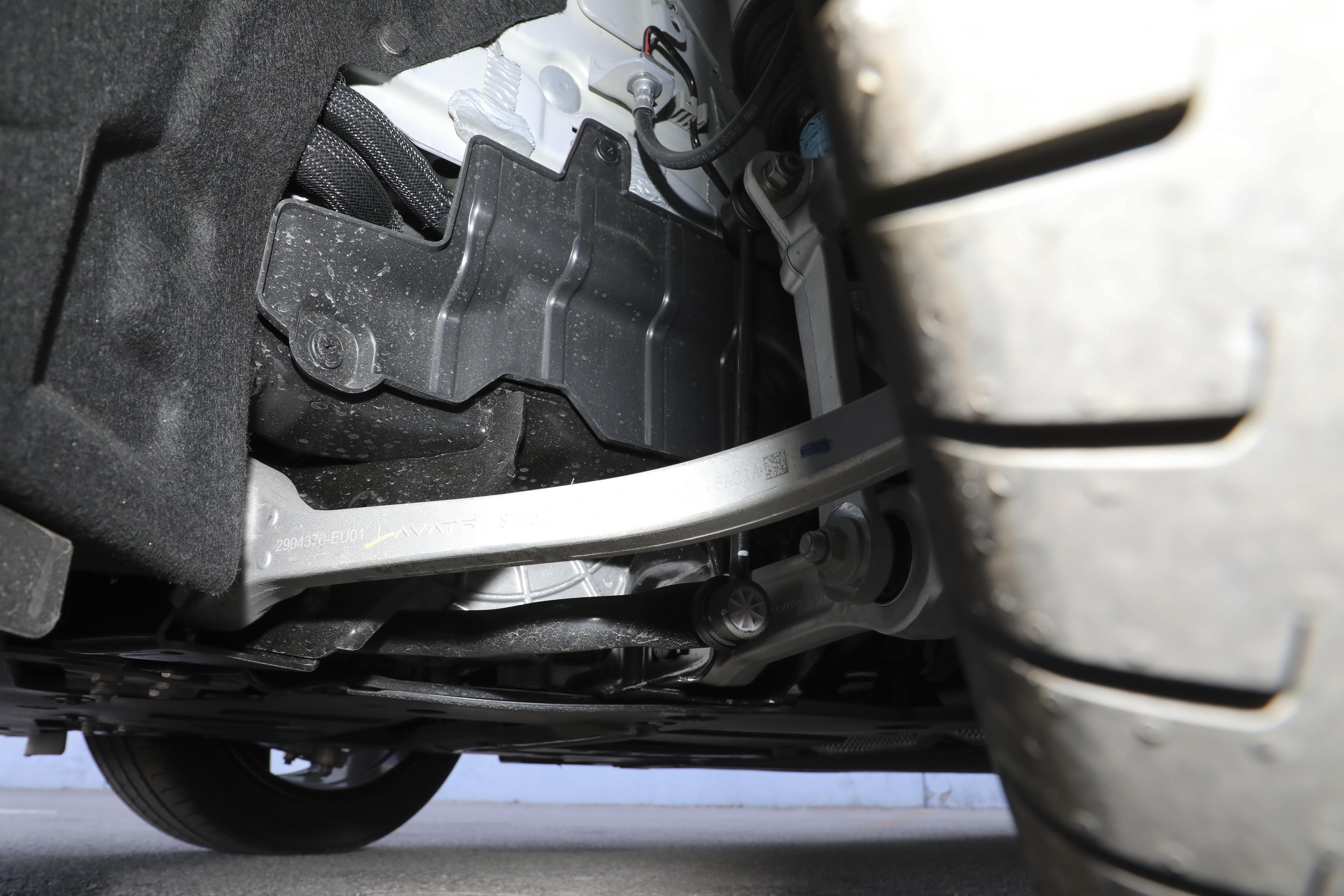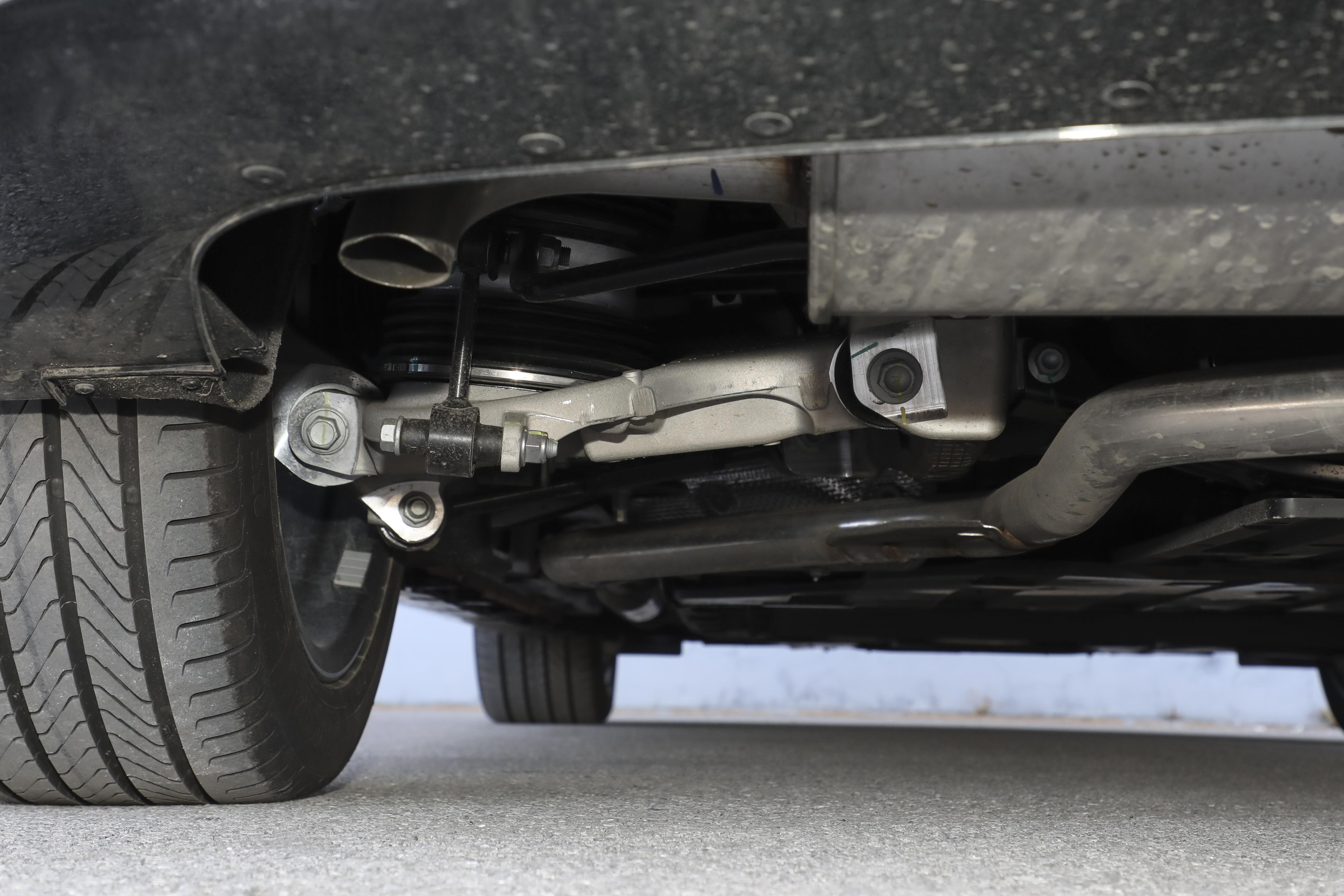 底盘调校兼顾舒适与操控,前双叉臂后五连杆悬架组合,前段软后端硬,调校偏舒适,在面对细碎颠簸时过滤得很干净,过减速带时也不会有生硬的冲击感。车身姿态控制得当,快速过弯时侧倾抑制得比较好,给驾驶者充足的信心。