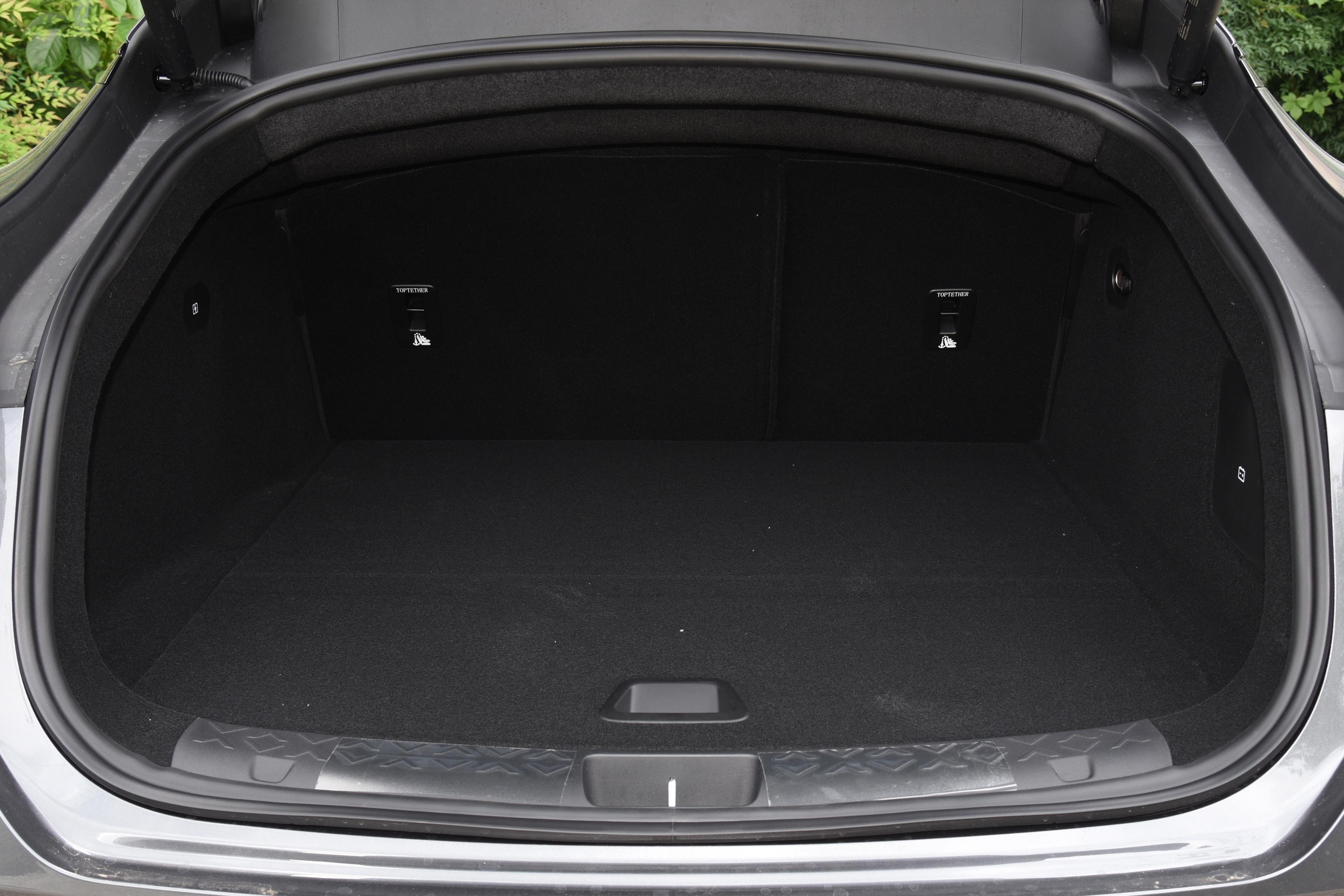 后备厢常规容积有416升,容积不算特别大,但它采用掀背式尾门设计,既美观又实用,取放大件行李格外方便。纯电版本还额外多了70升的前备厢,能放更多的东西,车里面也提供了不少储物空间,随身携带的手机、雨伞、电话、水杯、钥匙等零零散散的物品都有地方能放。