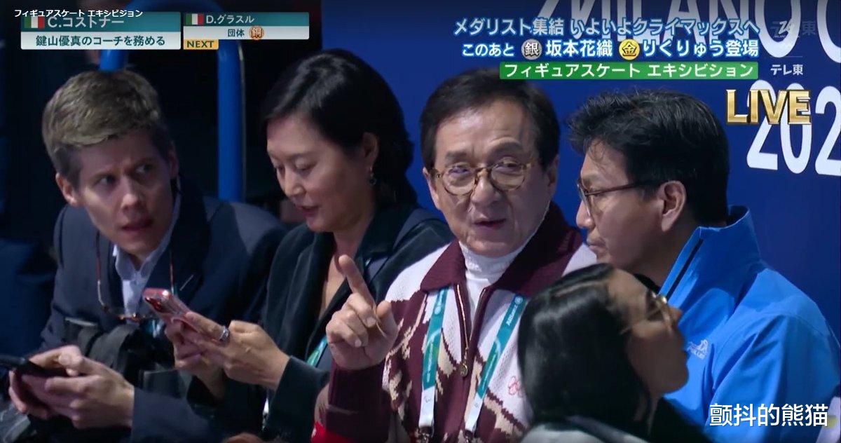 在他身着以白色为主的华丽服装表演结束后,观众席上的演员成龙被镜头捕捉到。这位71岁的国际巨星戴着眼镜观赛,让清晨收看直播的日本粉丝大为震惊。