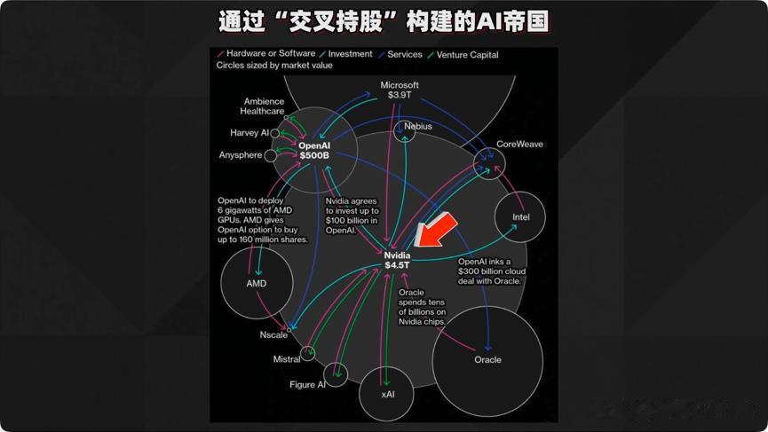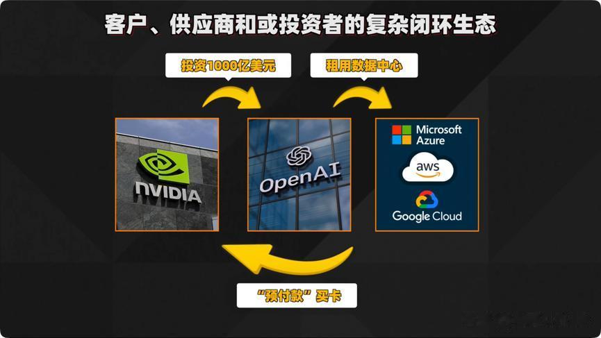然而,仔细观察细节会发现:微软、亚马逊、谷歌和Meta这“四大金刚”贡献了英伟达营收的近70%。同时,这几家云计算巨头不仅是英伟达的核心客户,也大量持有英伟达股权。有专家指出,通过交叉持股和大规模互签订单形成的循环融资结构,人为创造了一种复杂的“隐性杠杆”。
