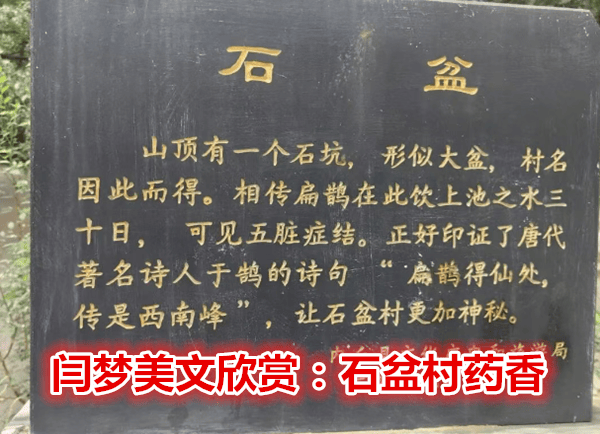 我们一行人站在上池路路口,听两位老支书介绍石盆村的村名来历。有一缕独特的幽香,从山野深处漫溢而来的清苦药香,悄然浮动。那是源自上池之水的气息。它仿佛从《本草纲目》的书页间逸出,如丝如缕,缠绕过古树的根须,浸润过果实的芬芳,最终沉淀在石盆村悠长的呼吸里。